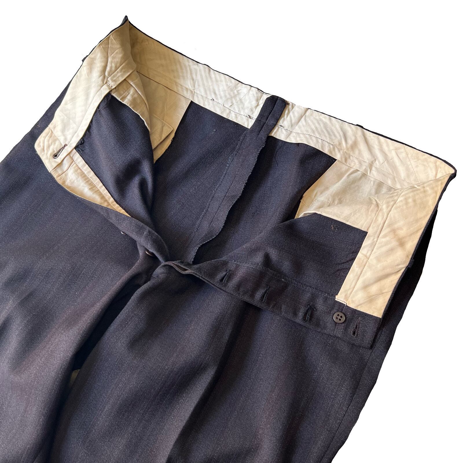 細いベルトループ、ボタンフライでウォッチポケットの付いたヴィンテージらしいディティール。