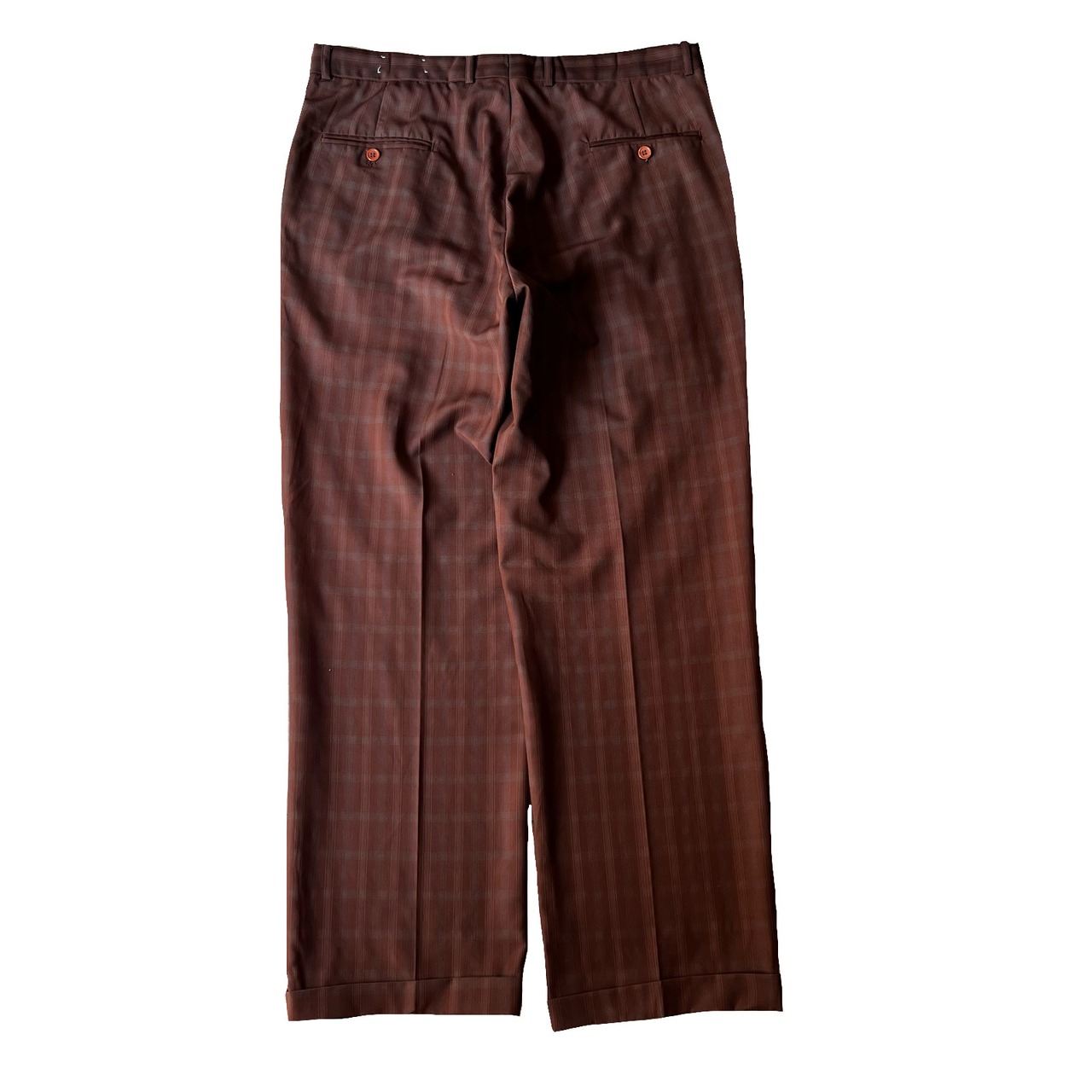Old SOPRANO rayon×polyester check wide slacks W38L31