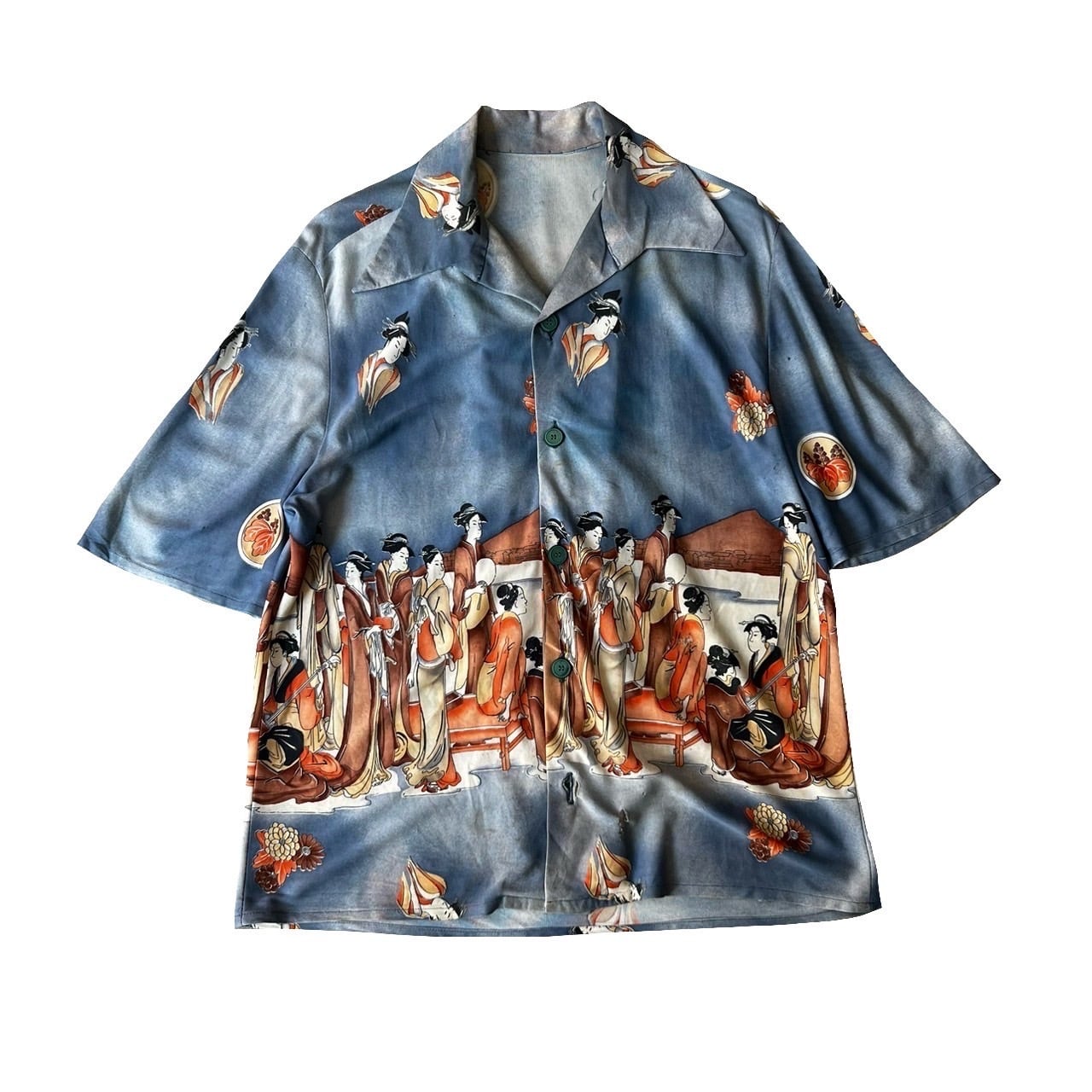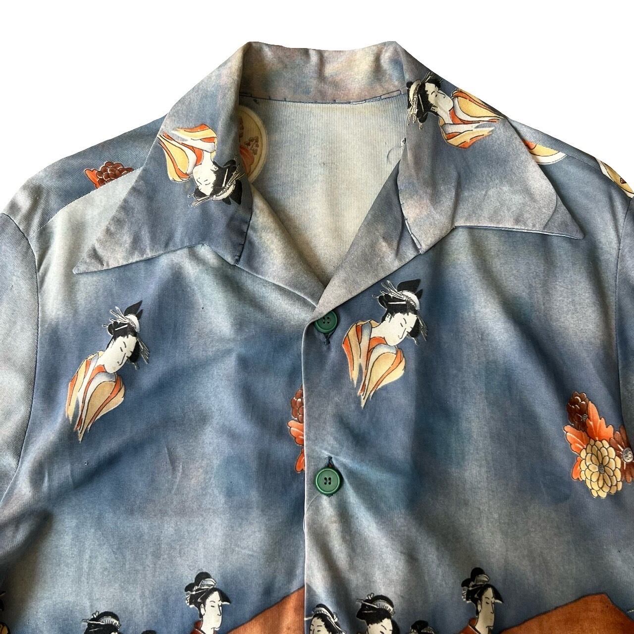 60-70s “舞妓” nylon hawaiian shirt 15 1/2