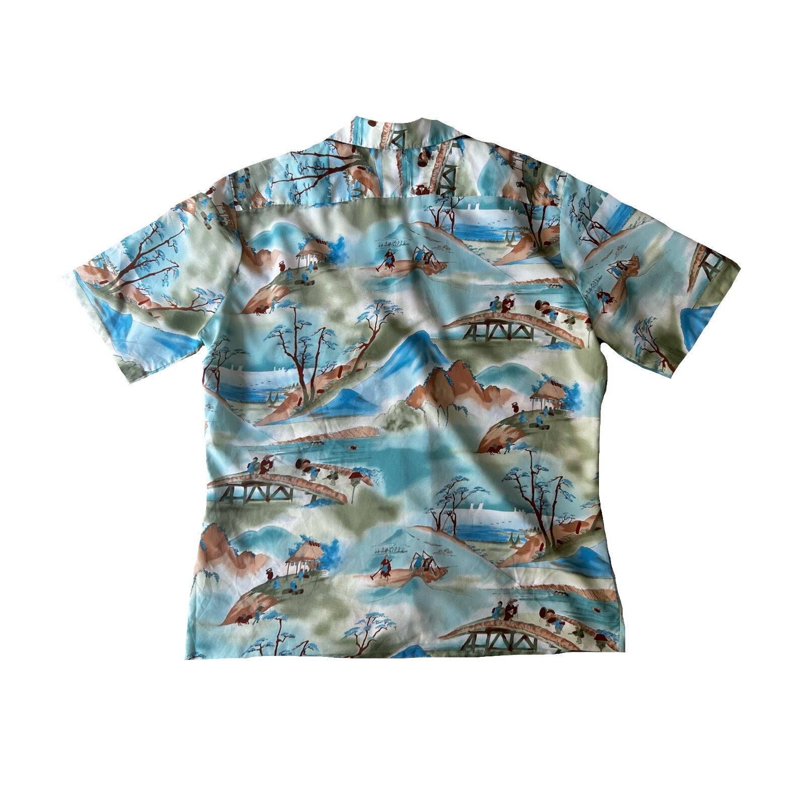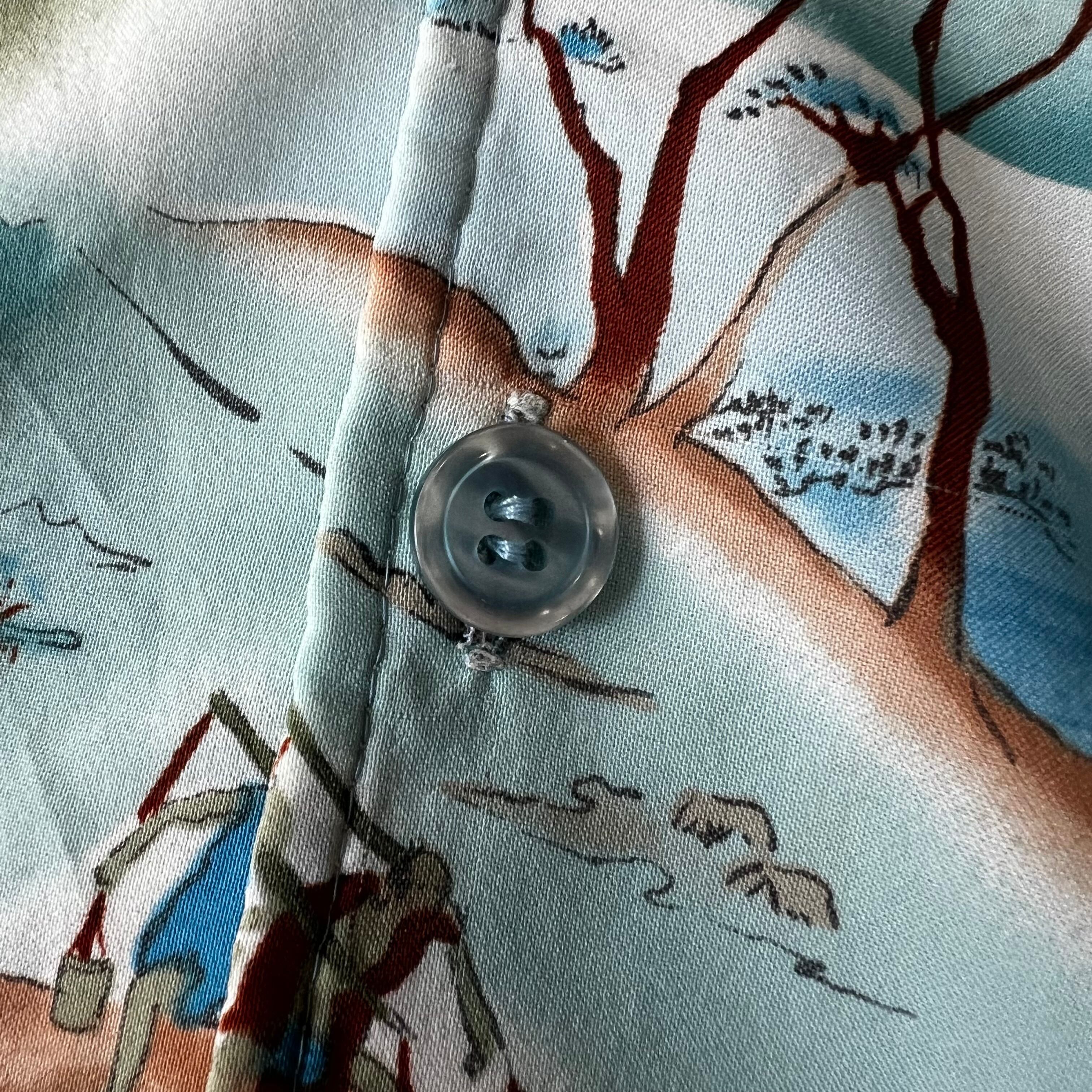 この年代らしいデカ襟のハワイアンシャツ。