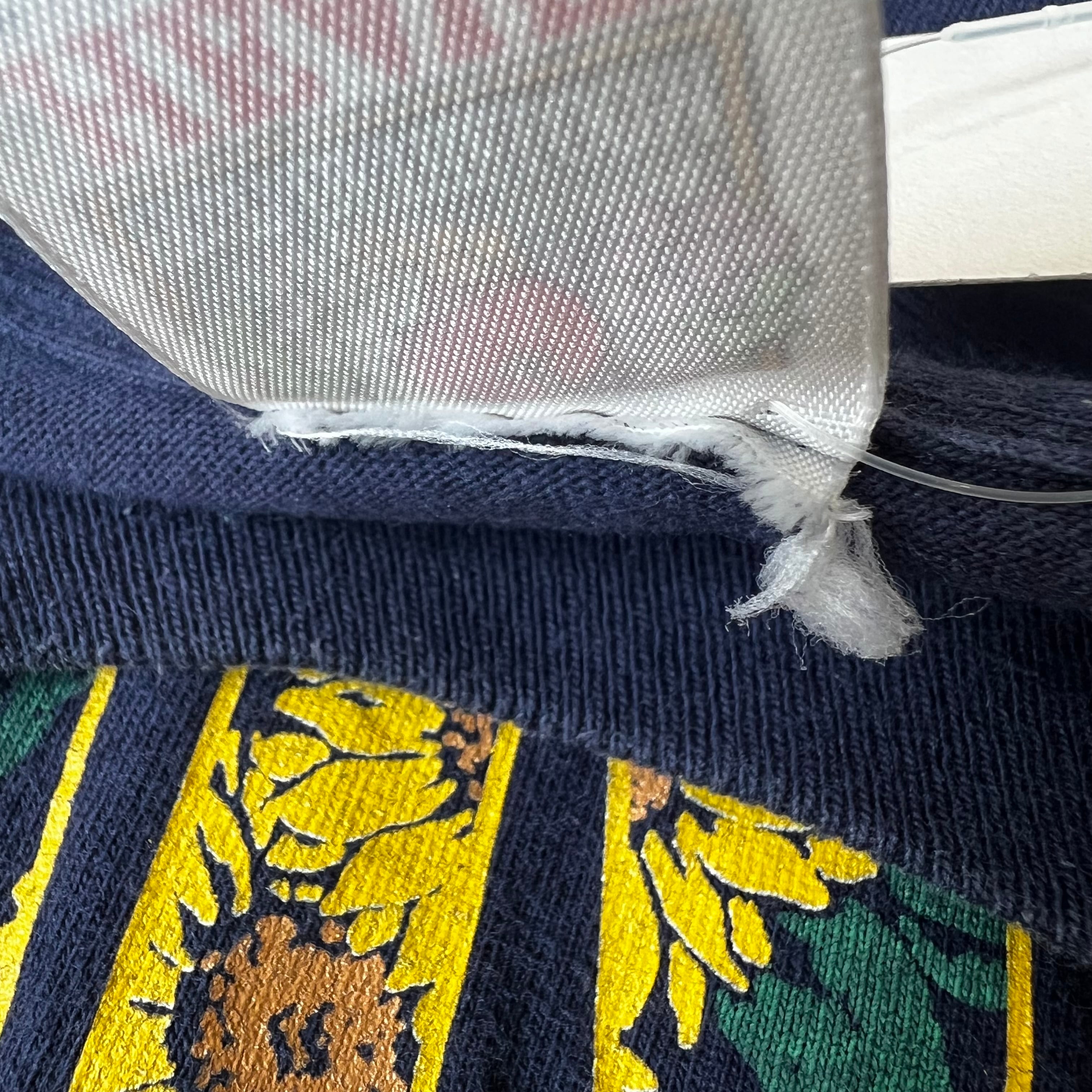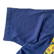 袖裾シングルステッチのネイビーボディーにヒマワリの洒落た配色。