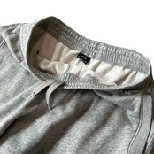 ワイドにストレートに落ちる、裾で絞りの無いスウェットパンツ。