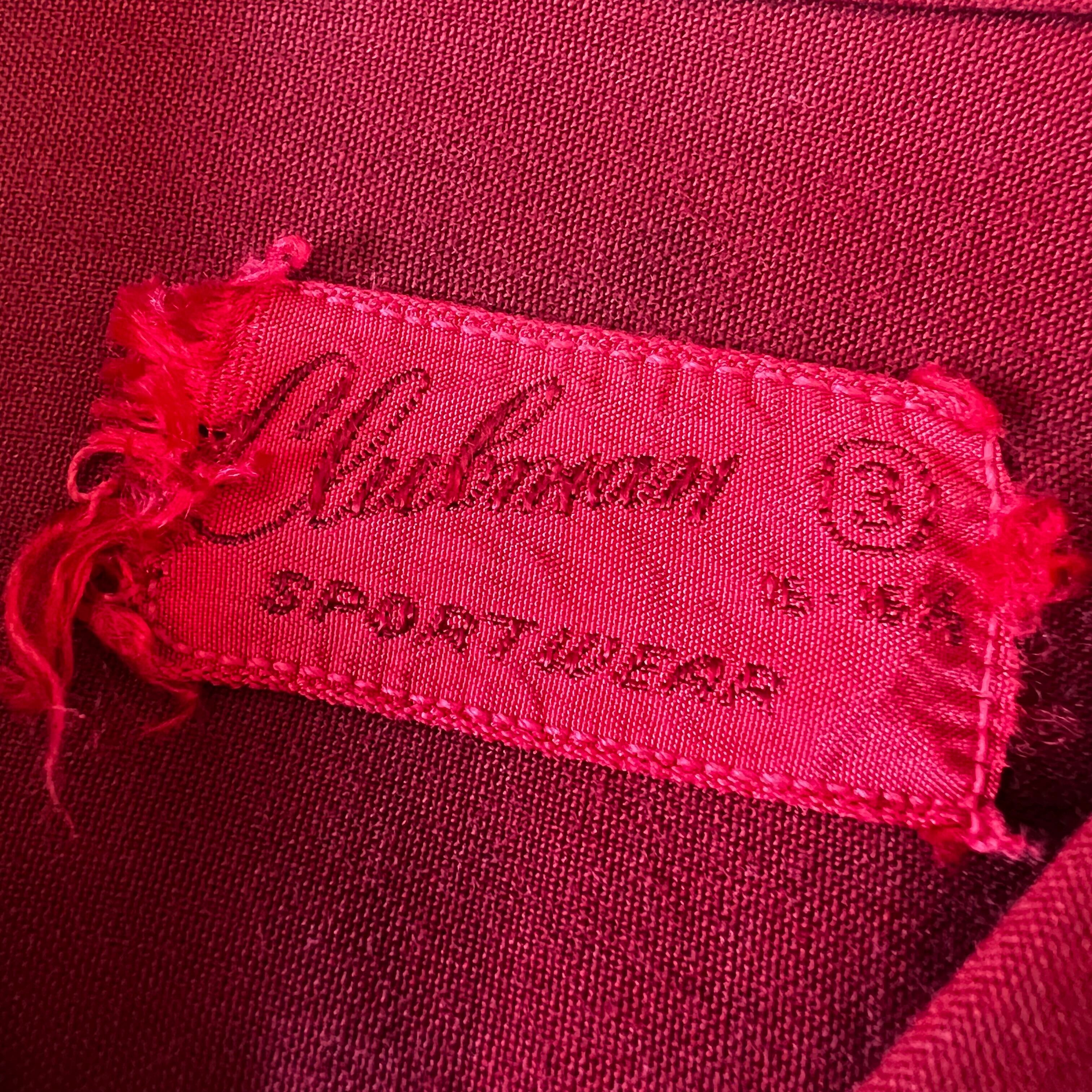 弧を描く長い襟、スクエアのフラップ、バックスタイルのギャザーの数、この年代らしいディティール。