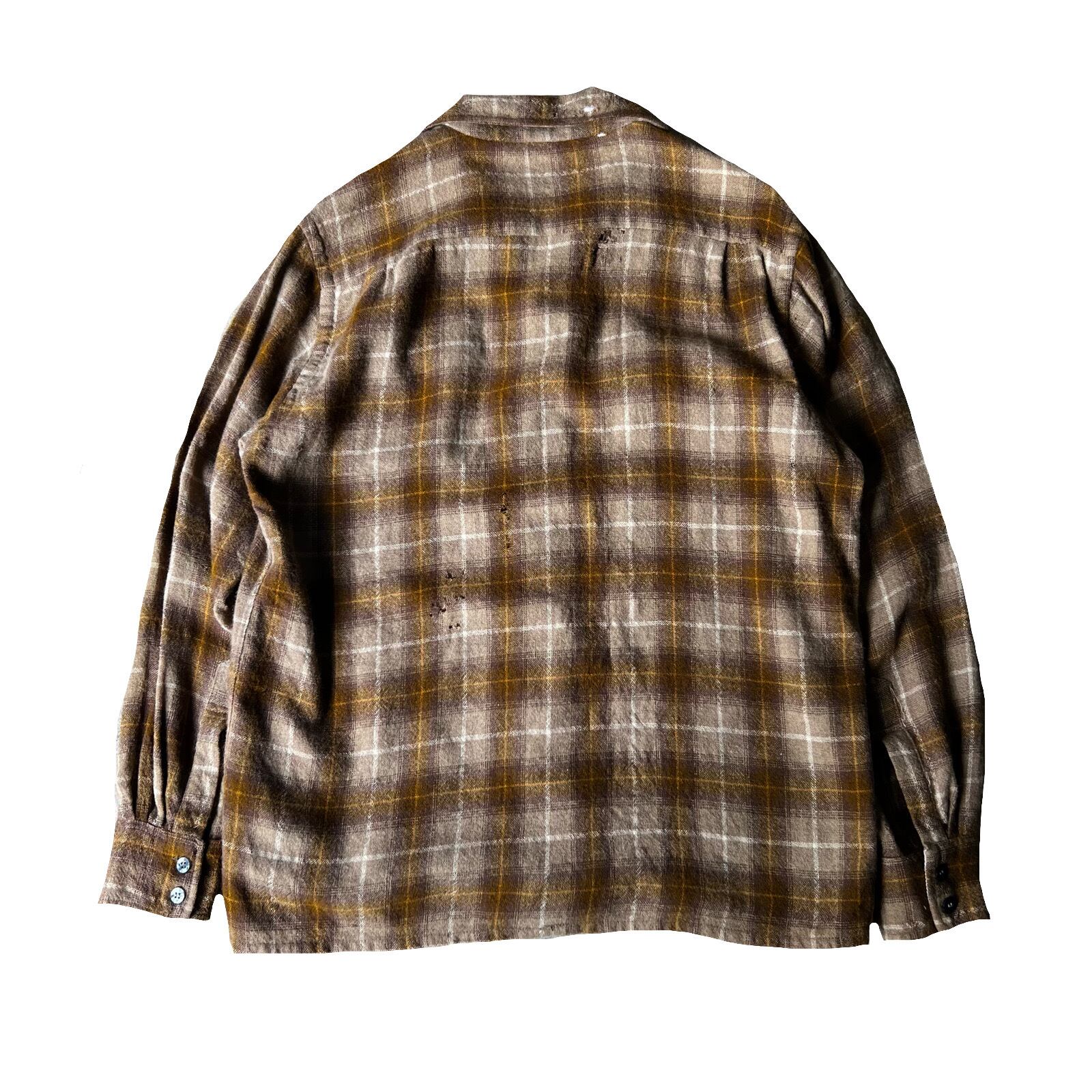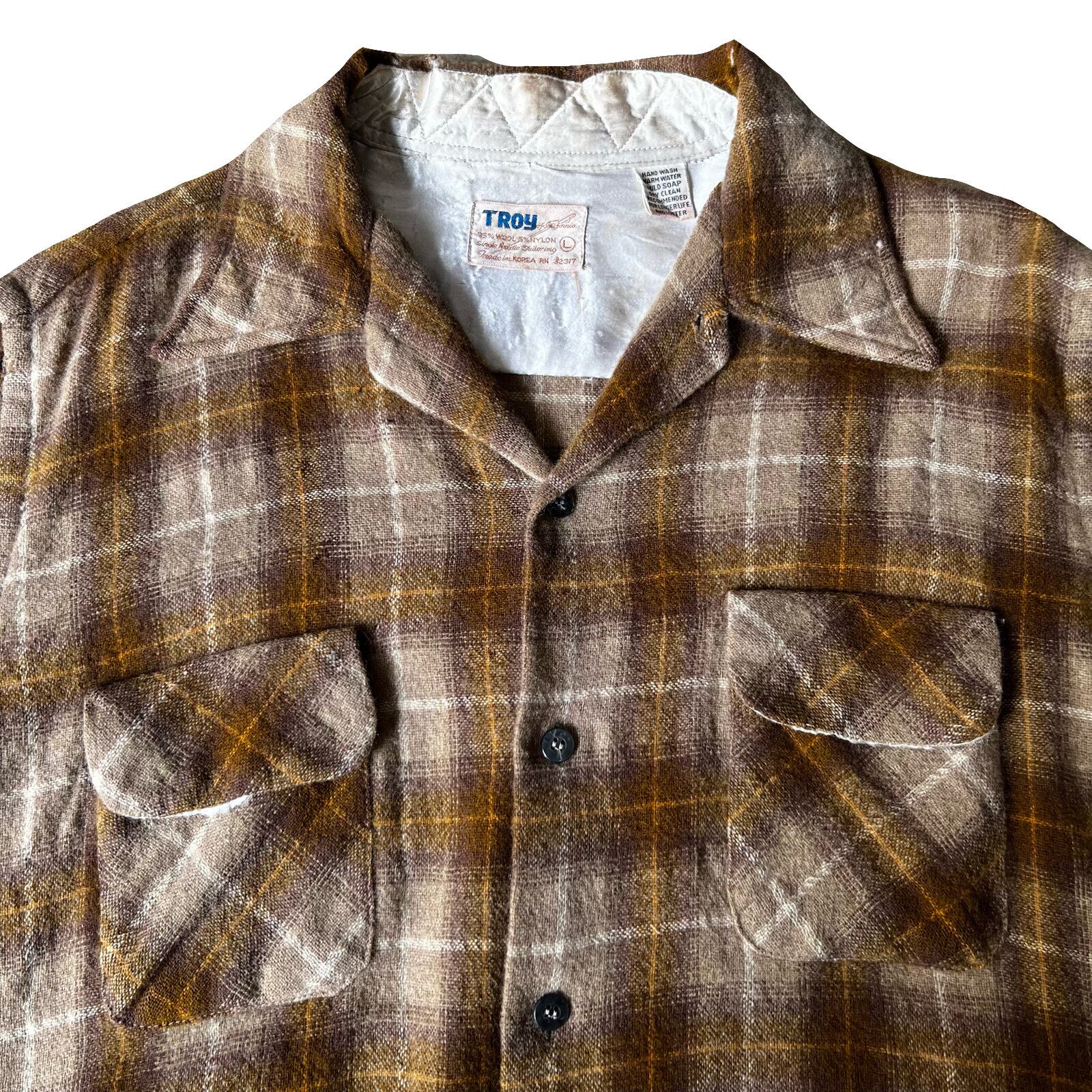 60-70s TROY wool×nylon check box shirt 16 1/2