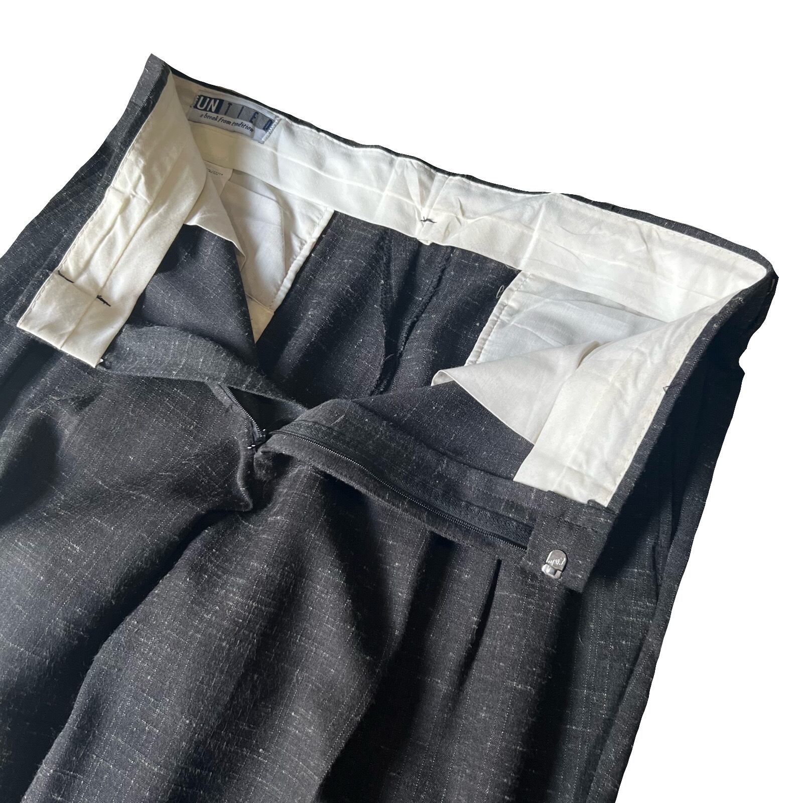 Old UNTIED rayon×polyester “Kasuri” wide slacks W34L32