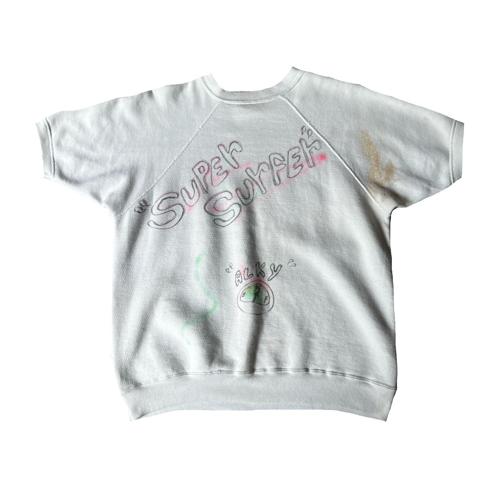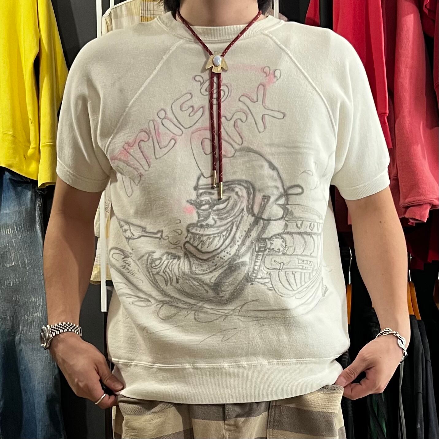 50-60s Vintage Airbrush cotton raglan sleeve short sweat shirt