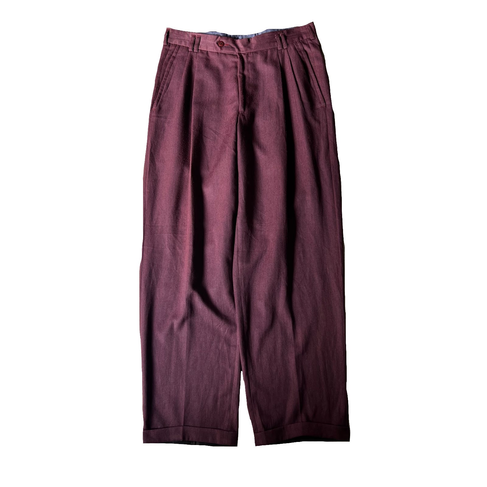程よくテーパードの効いたシルエット。ウエストを絞った表情の良い3タックでダブル仕様。