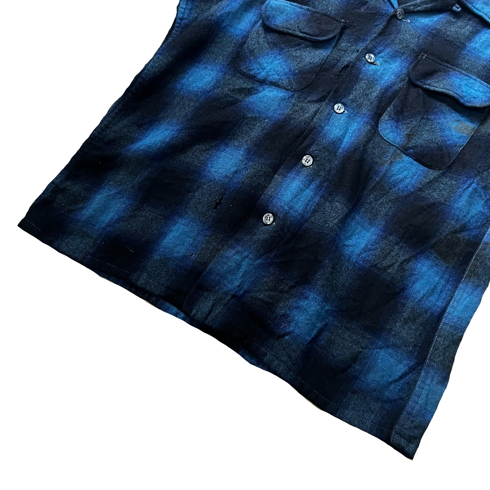 60-70s Golden Line wool×nylon check box shirt 16 1/2