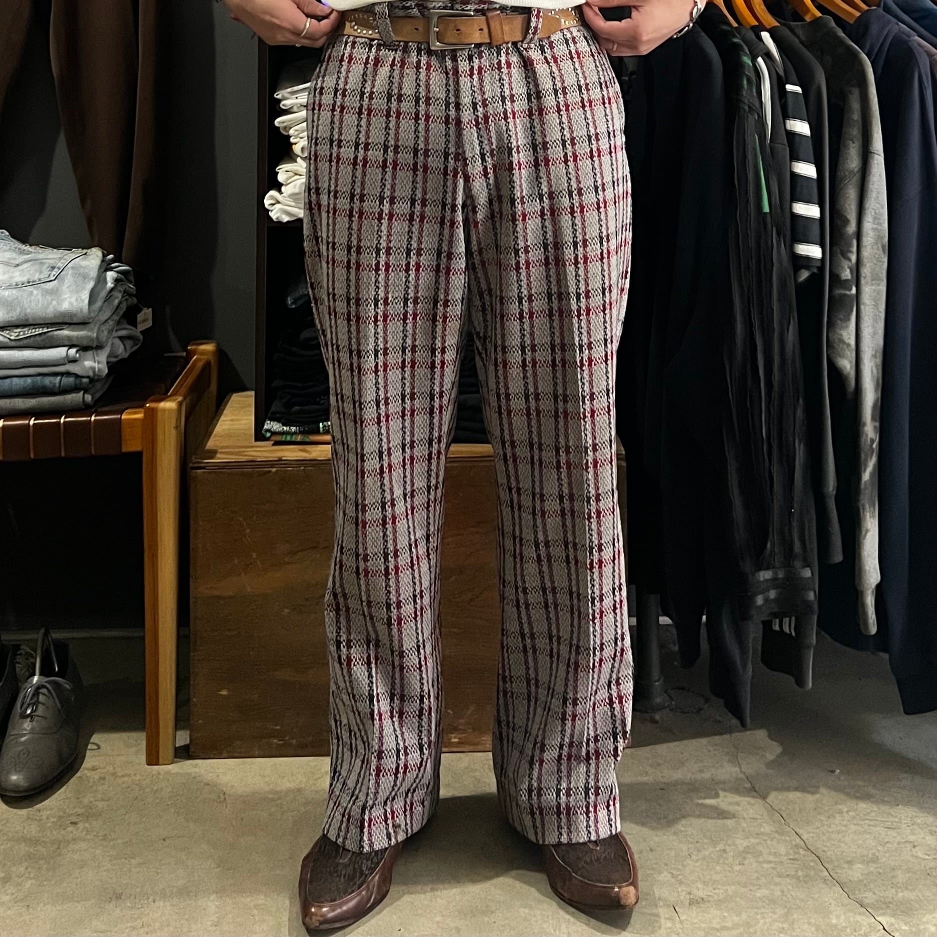 60-70s cotton×polyester check pants