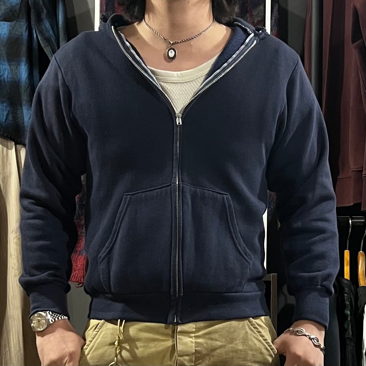 Mとレイヤードを楽しめるサイズ感ですよ。