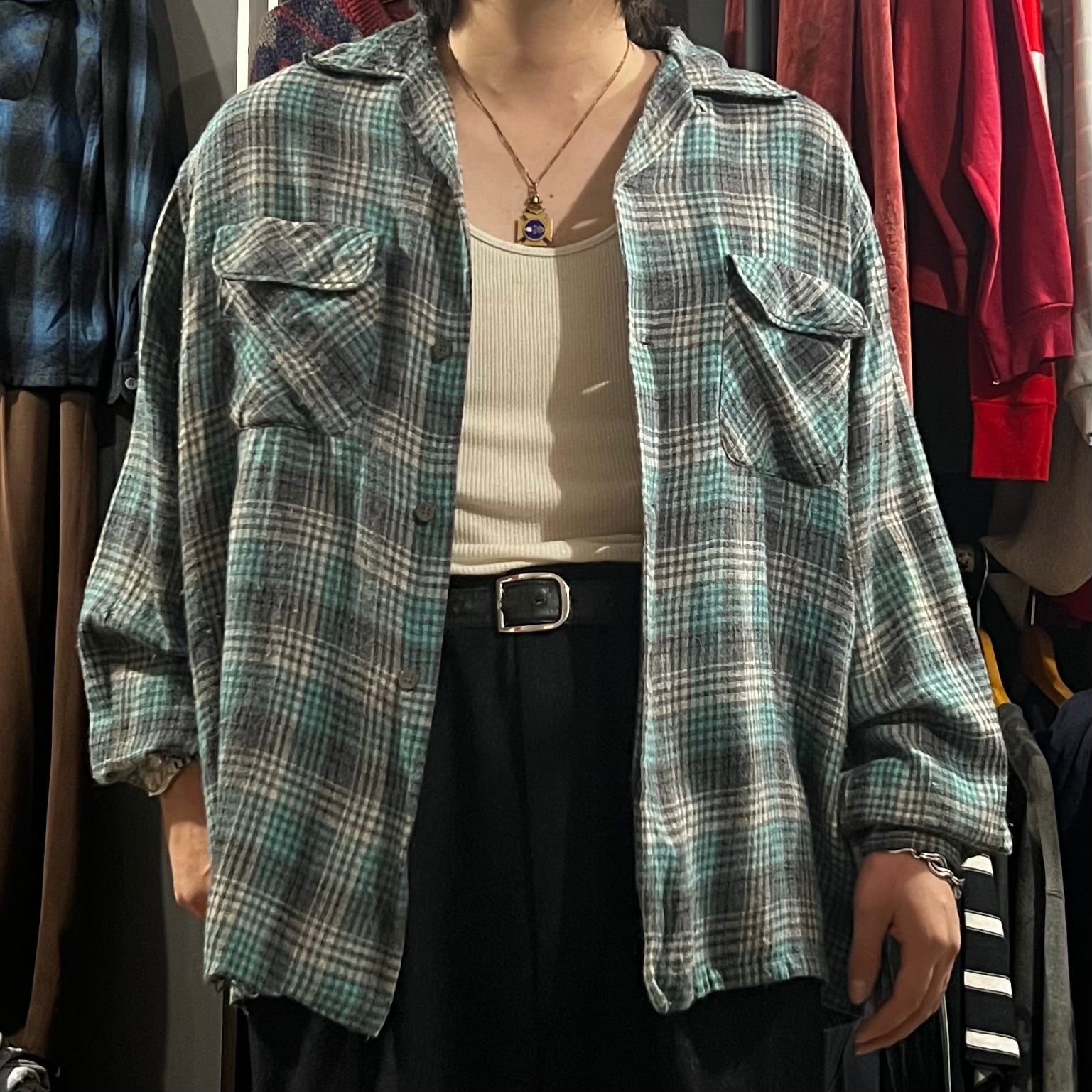 50-60s Vintage wool×nylon? check box shirt 17 1/2