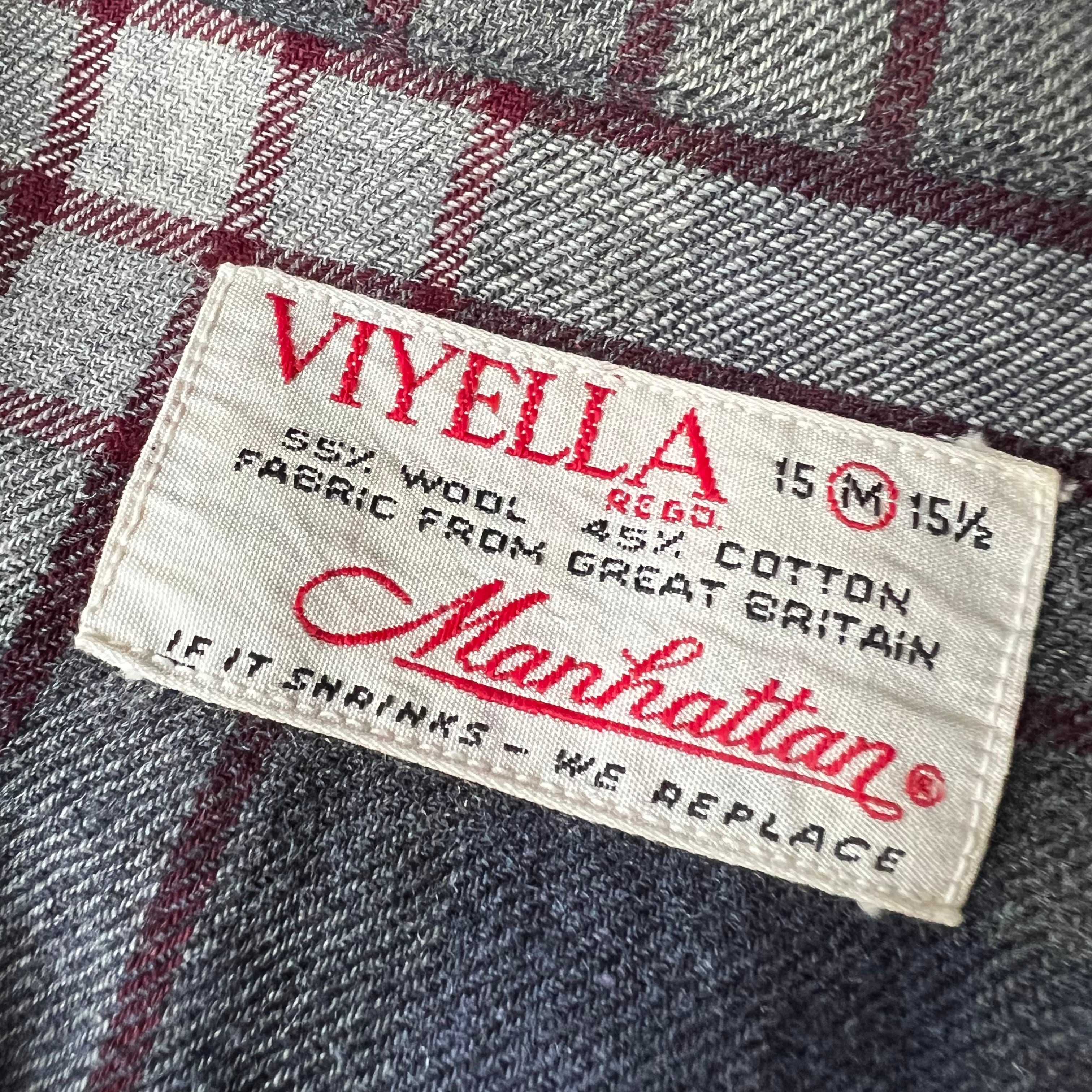 60s Manhattan “VIYELLA” wool×cotton check box shirt 15 1/2