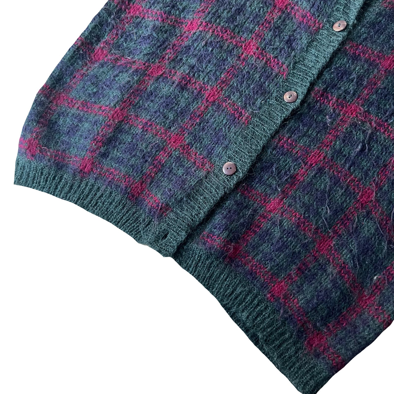 Old PAUL HARRIS DESIGN mohair×acrylic check cardigan M