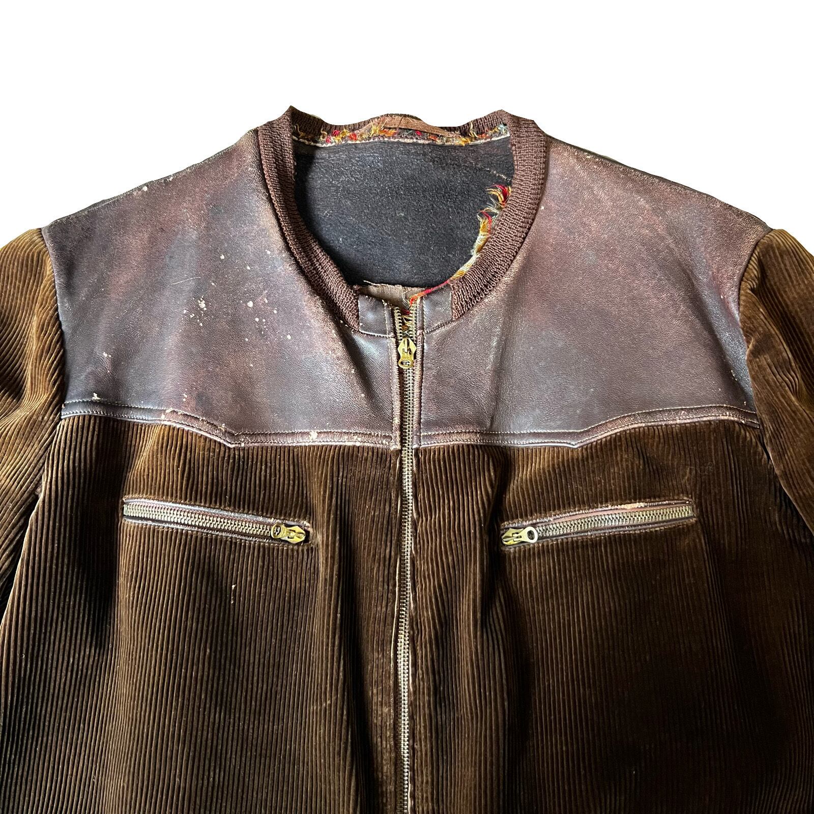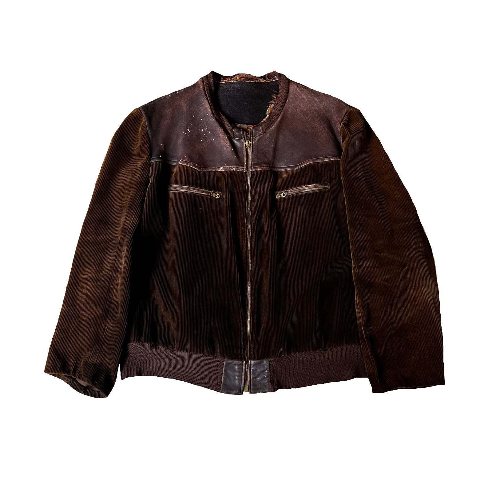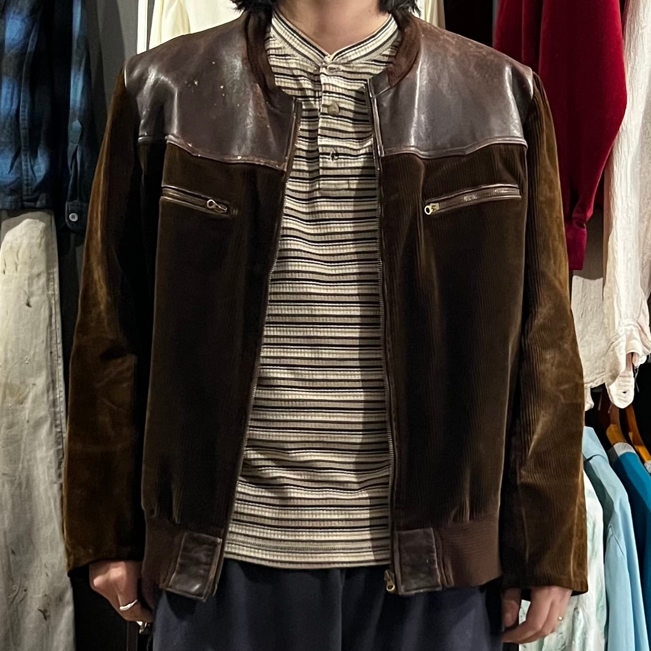 上質な柔らかなレザーと太畝のコーデュロイの切り返し。