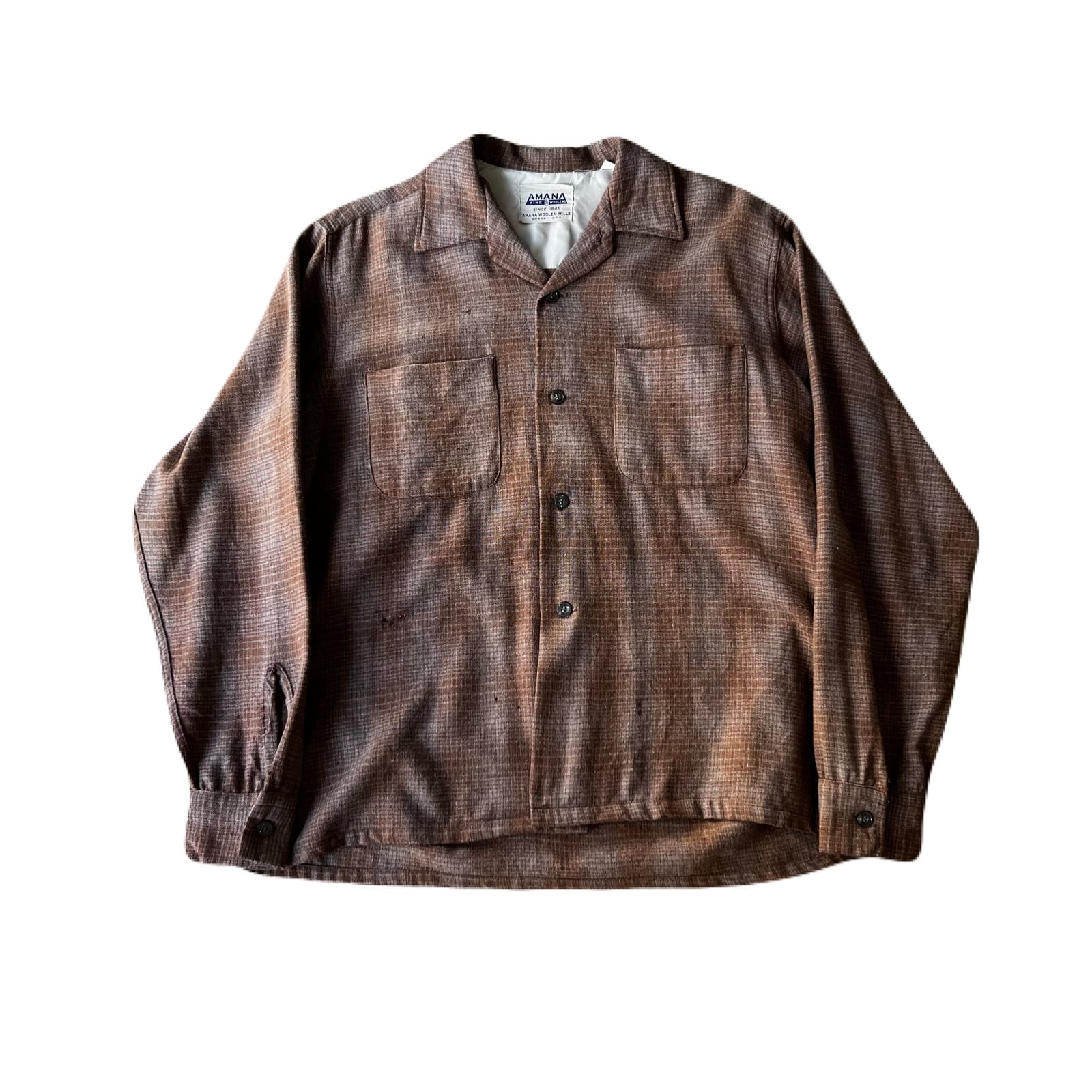 60s AMANA FINE WOOLENS wool check box shirt 15 1/2