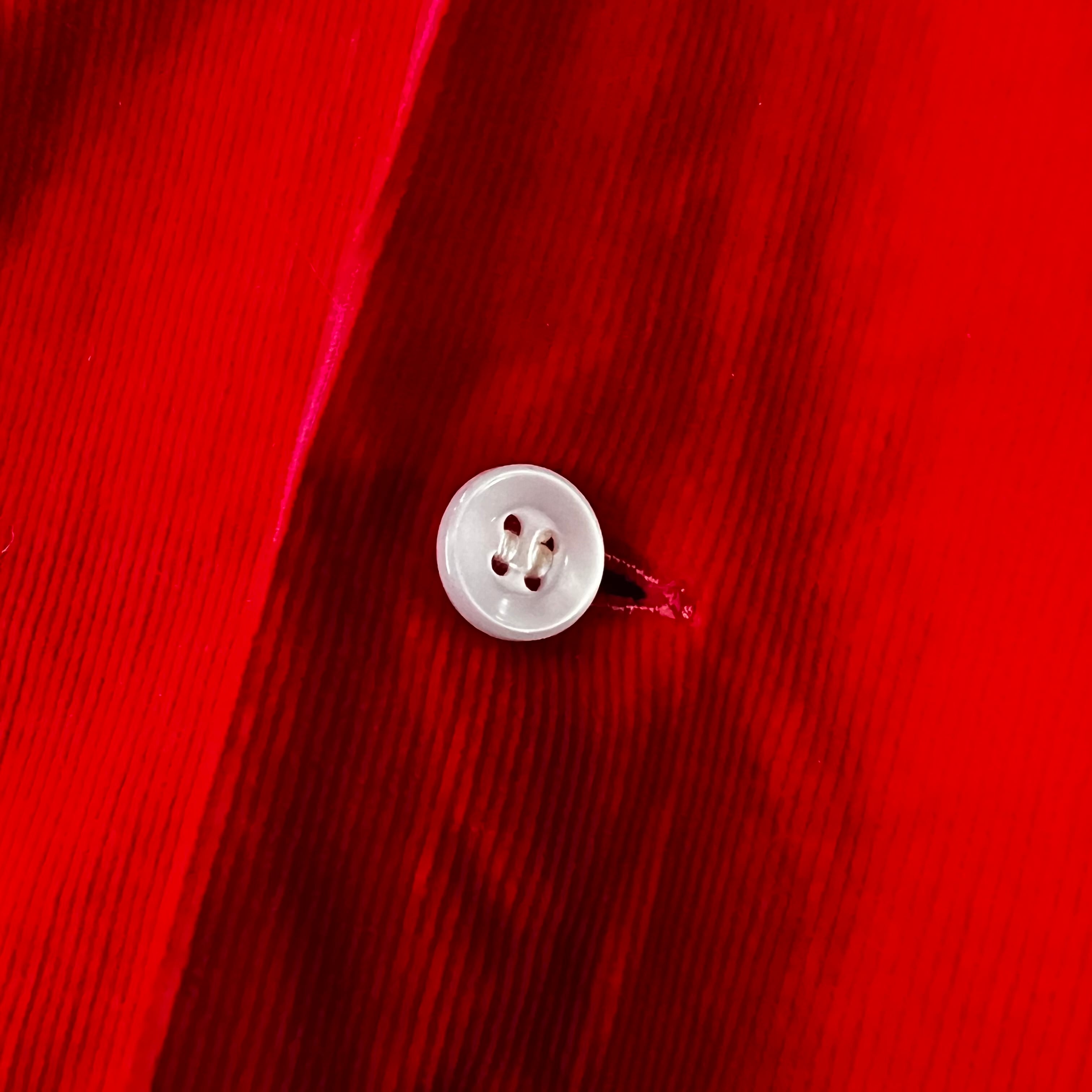 発色の良過ぎるレッドボディーの細畝のコーデュロイシャツ。