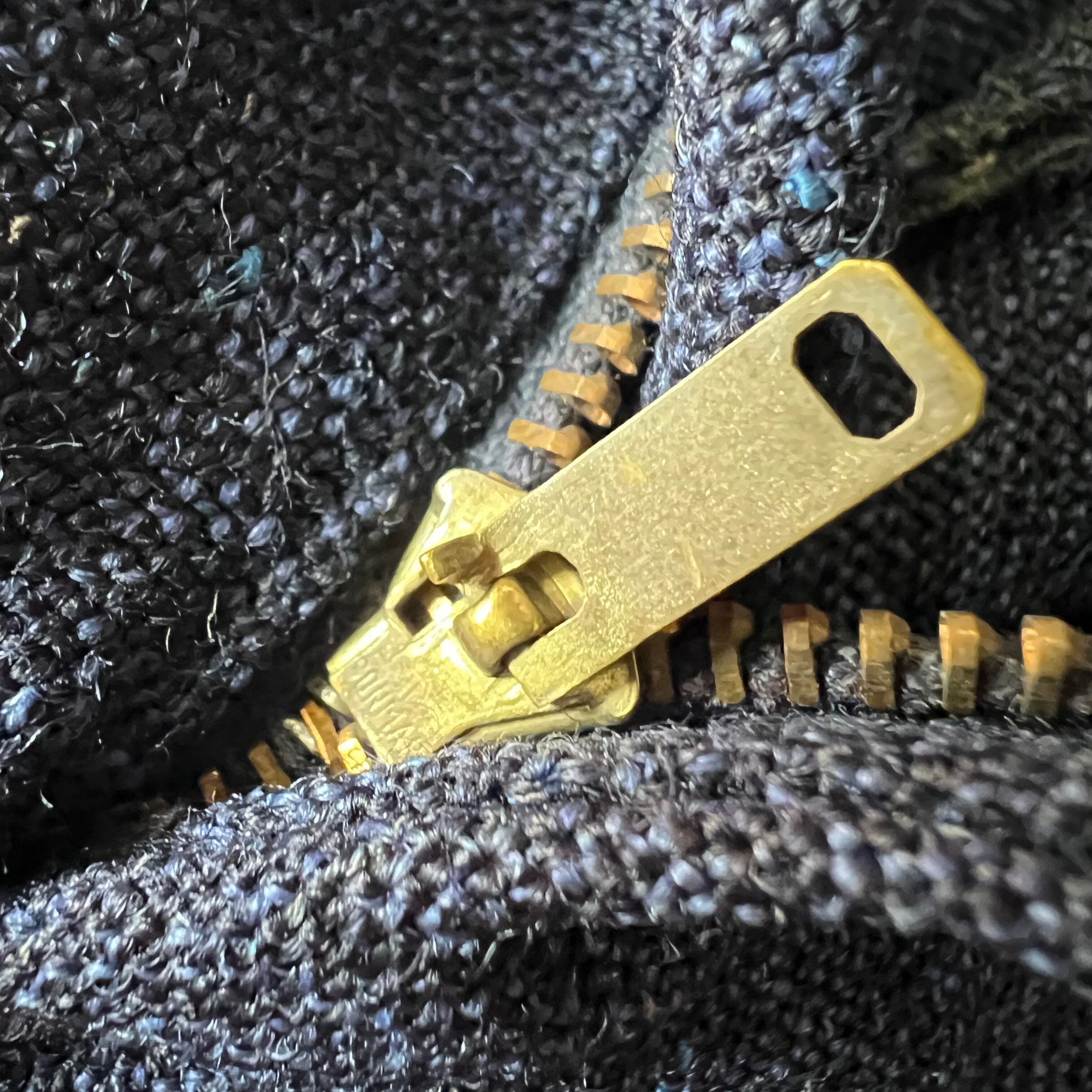 高級感のある暗めなネイビーに絣柄の様なブルーの糸を使って仕立てられた1本。