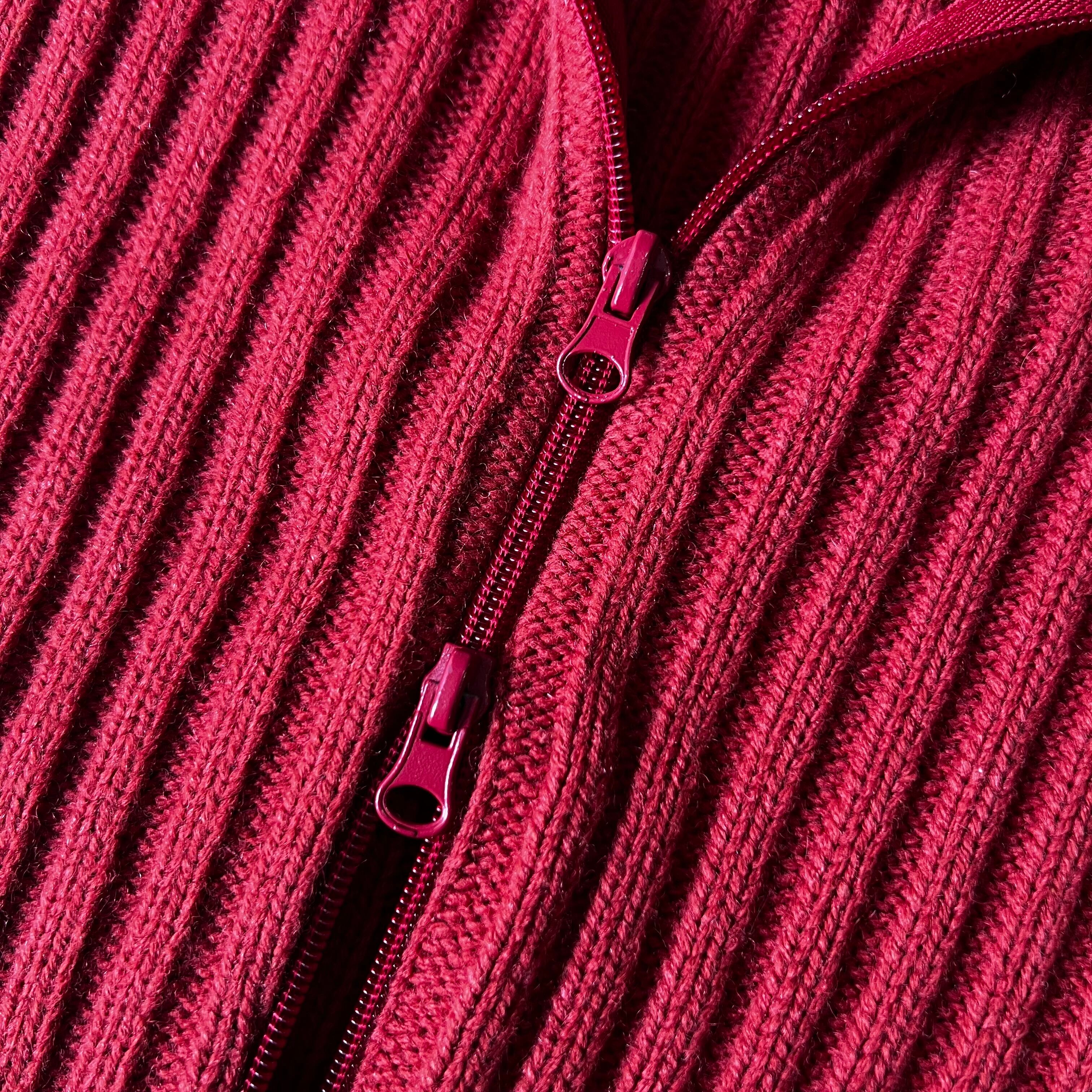 タートルネックぐらいあるネックの高さ、レイヤードを楽しめるダブルジップ。