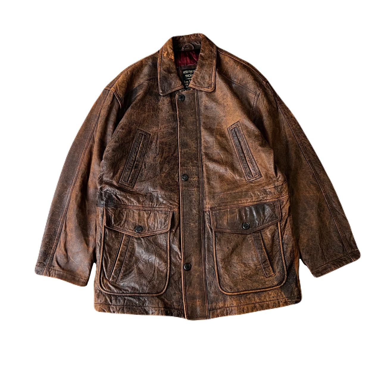 Old RESERVATIONS TICKETS leather jacket L