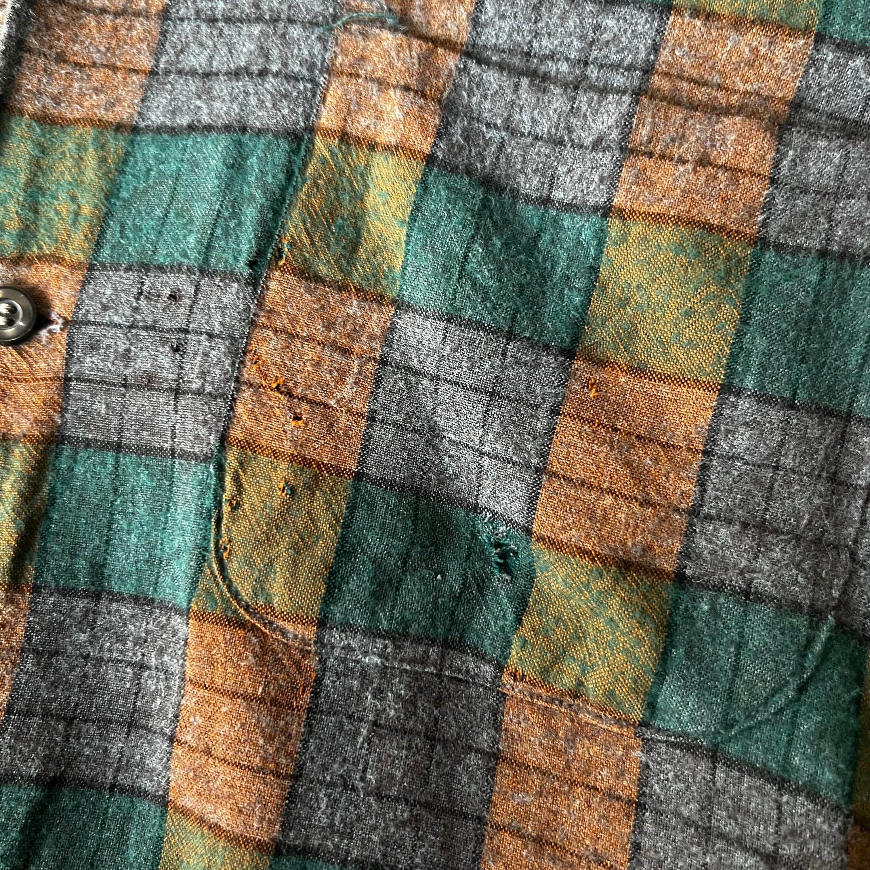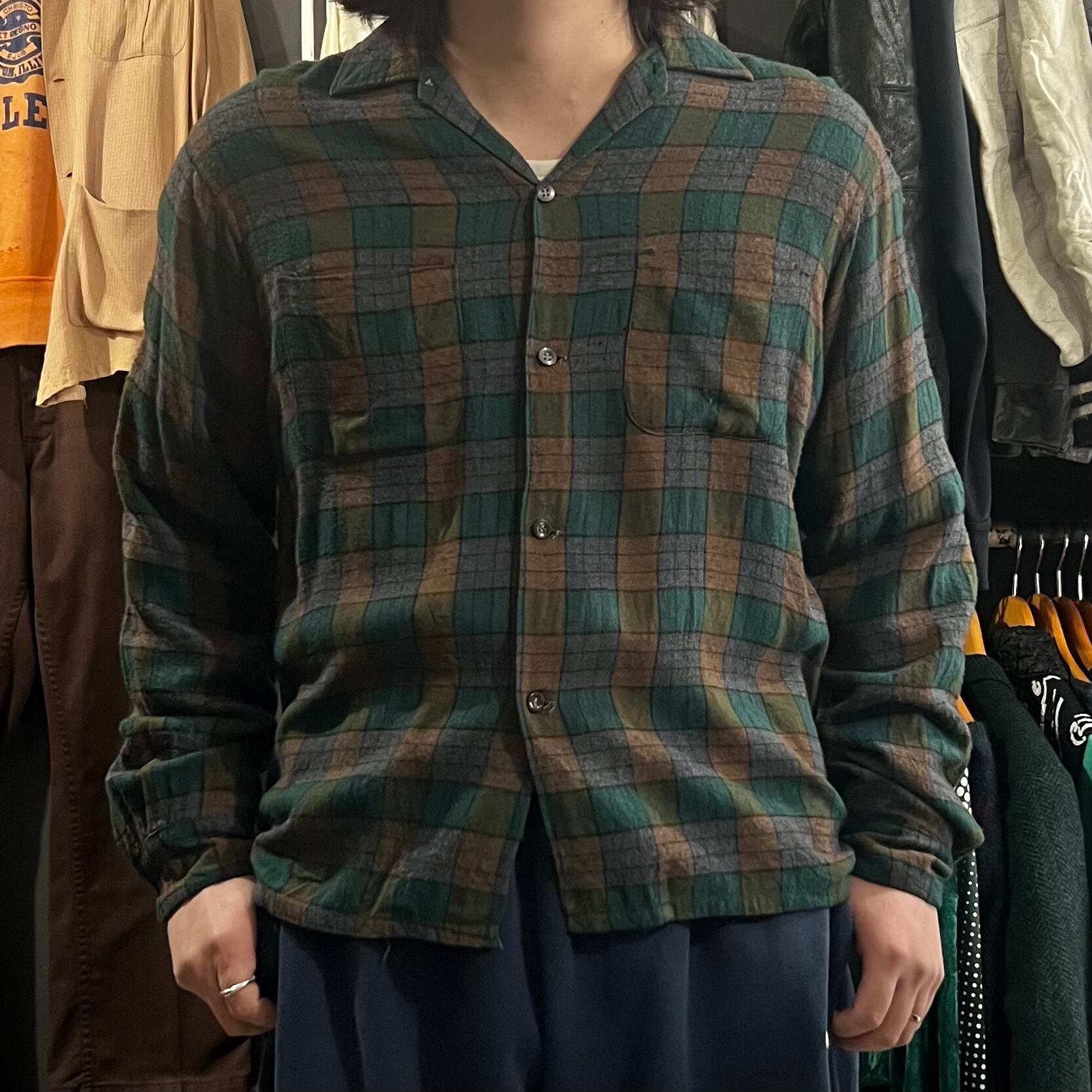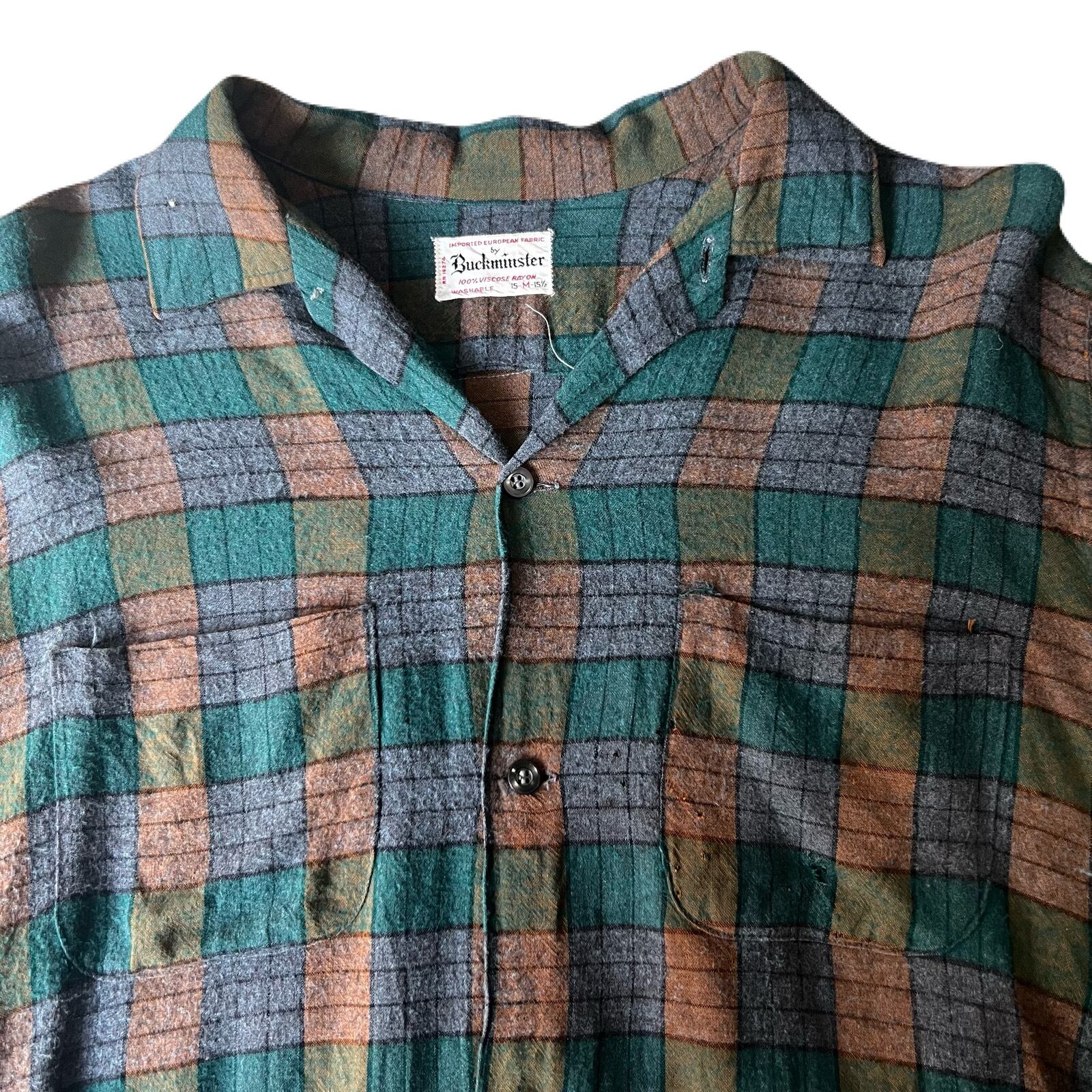 60s Buckminster rayon check box flannel shirt 15 1/2