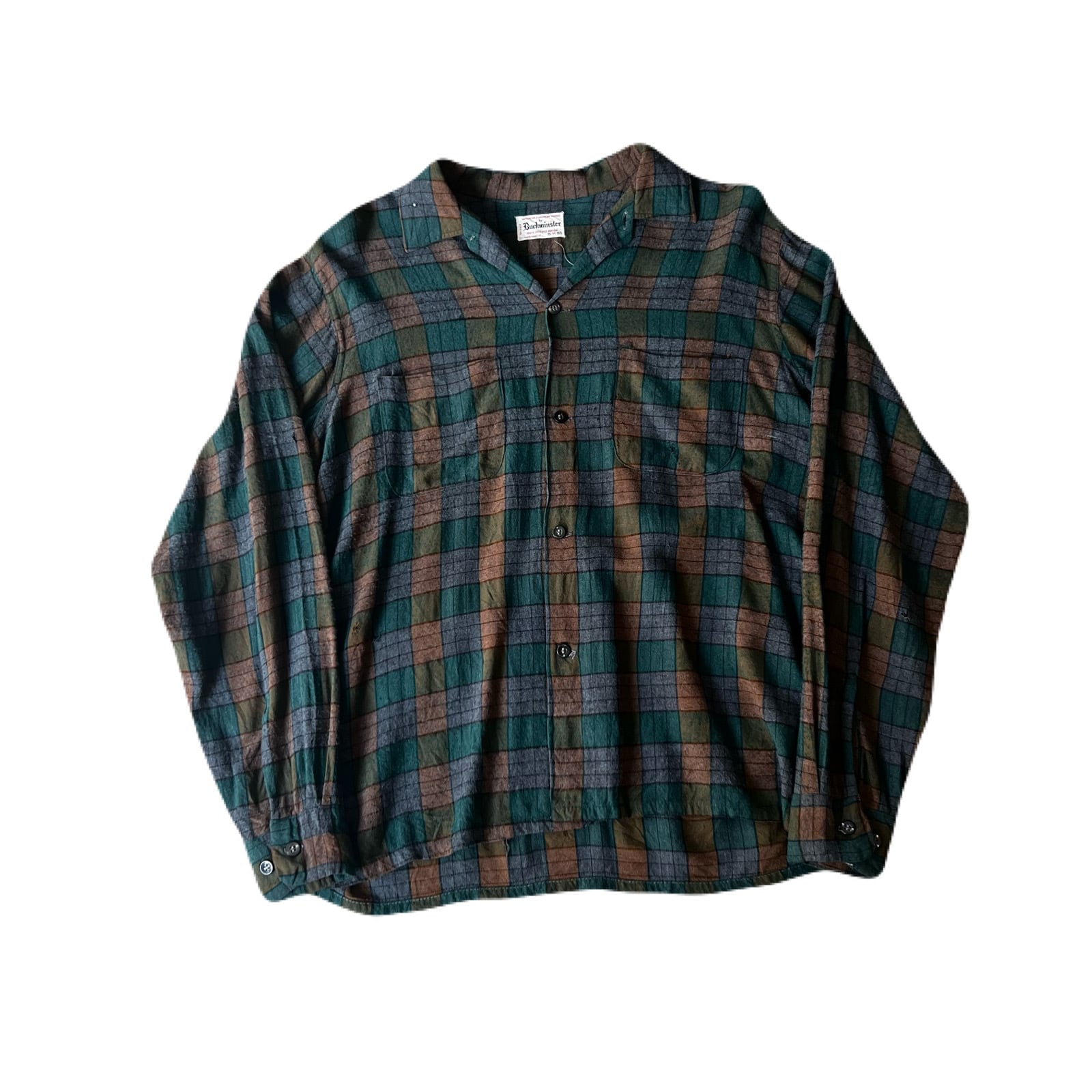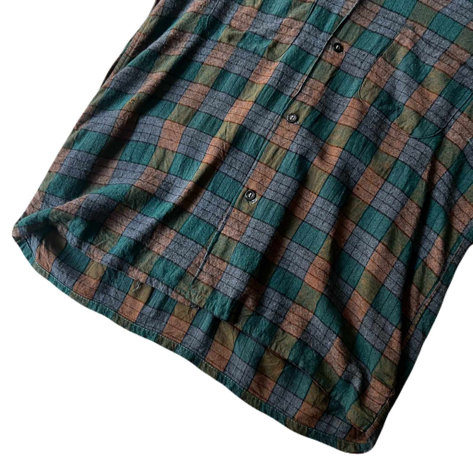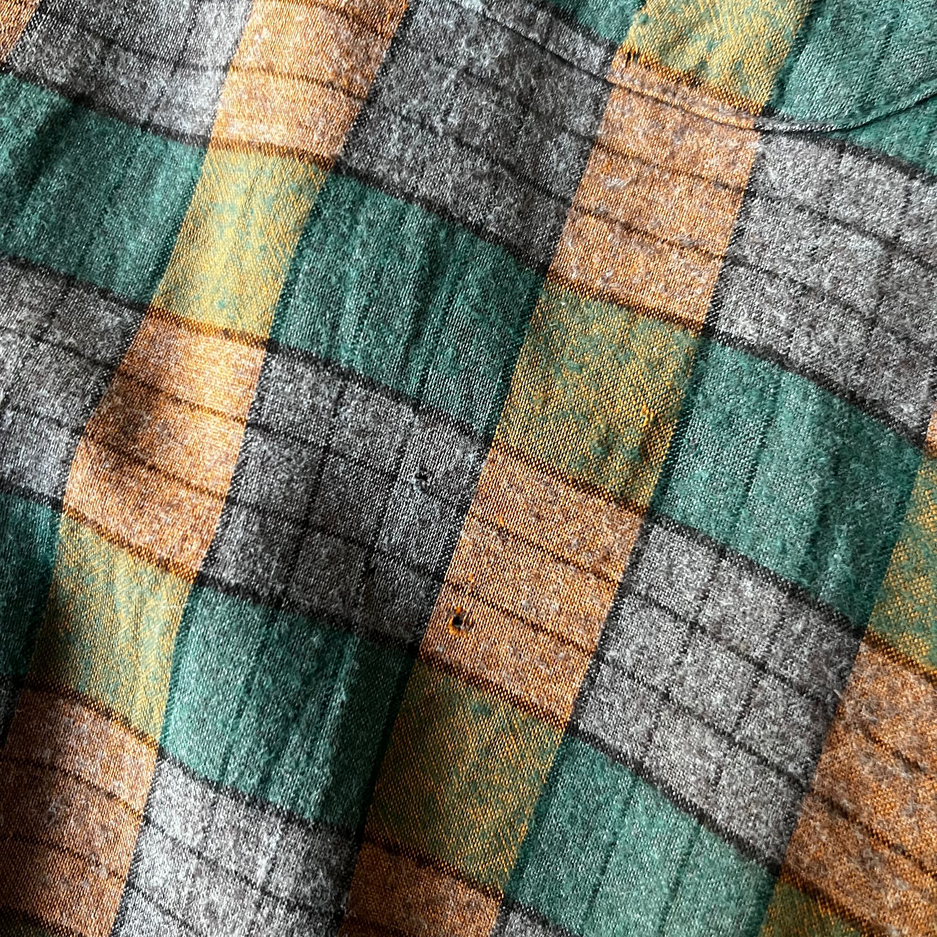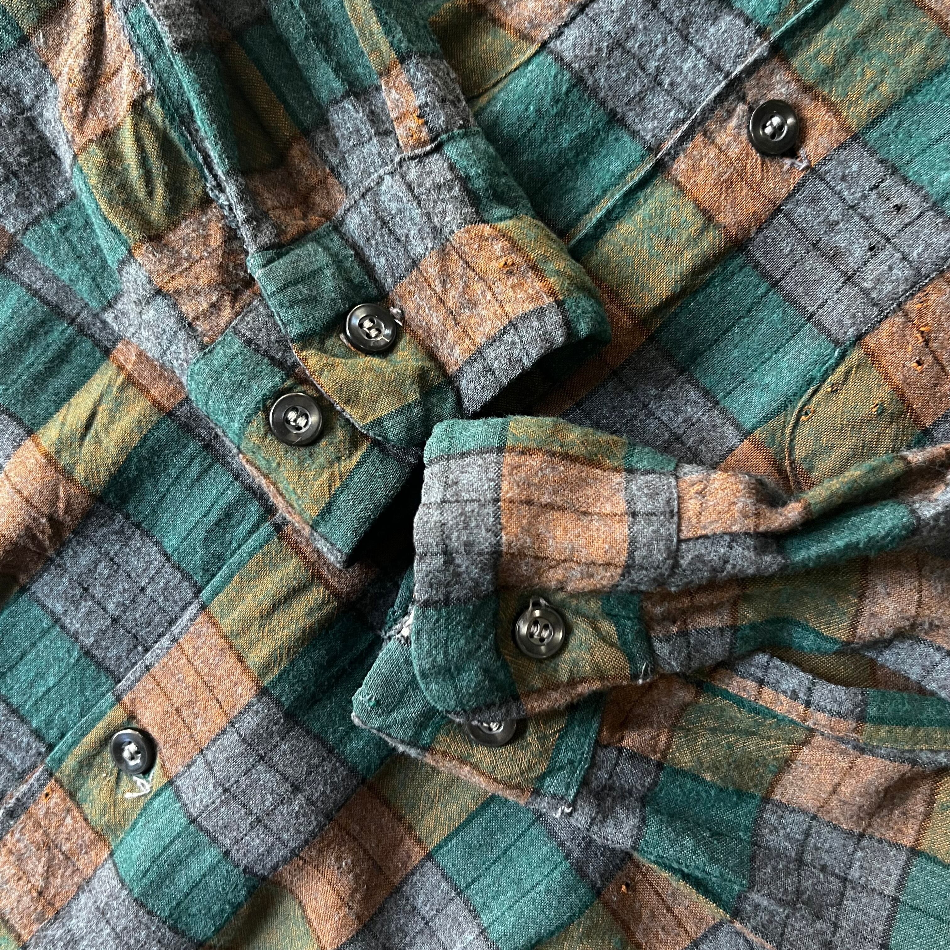 60s Buckminster rayon check box flannel shirt 15 1/2