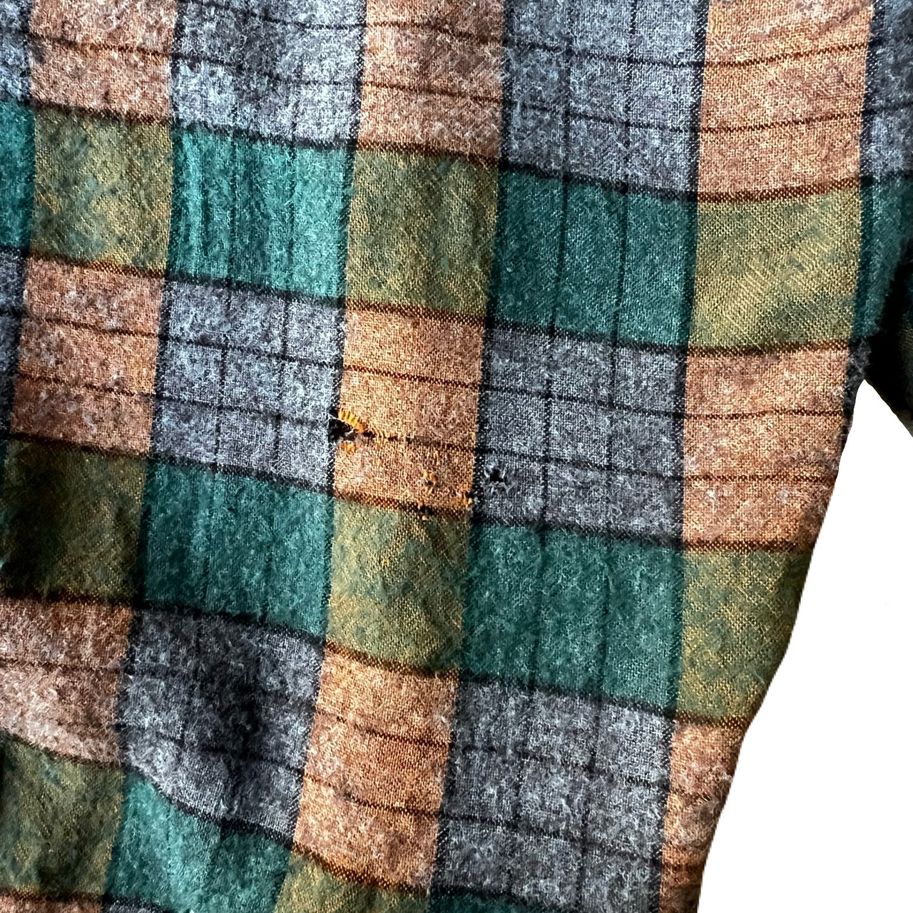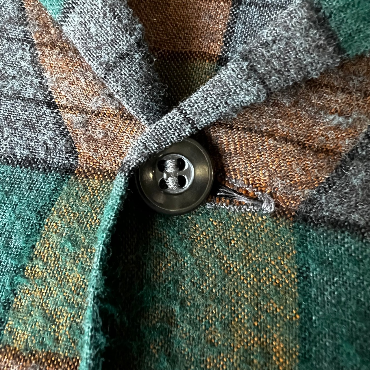 グリーンとオレンジとパープル、独特な配色のチェック。