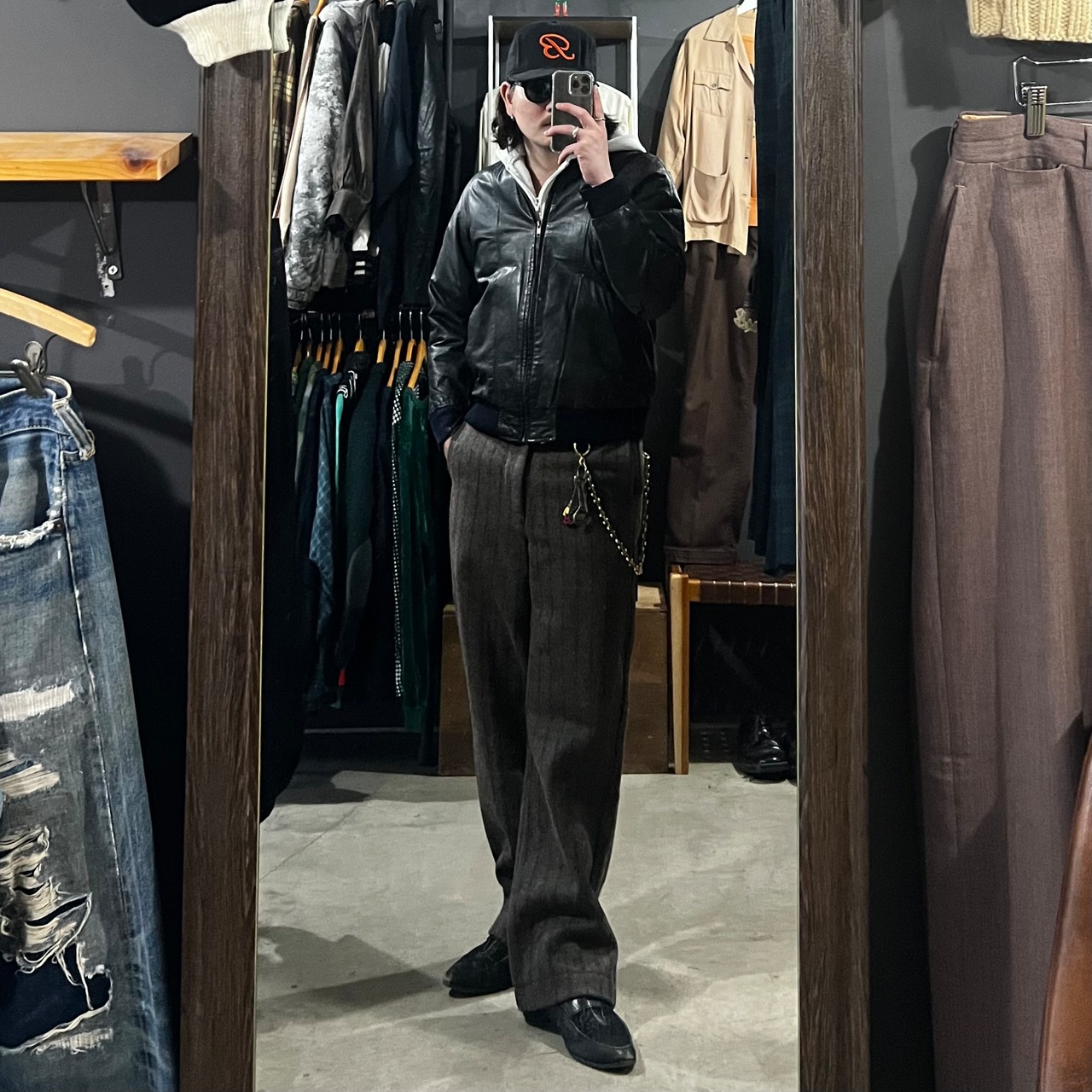 軽くハリ感のある革質、リブ付きって所がまた良い。