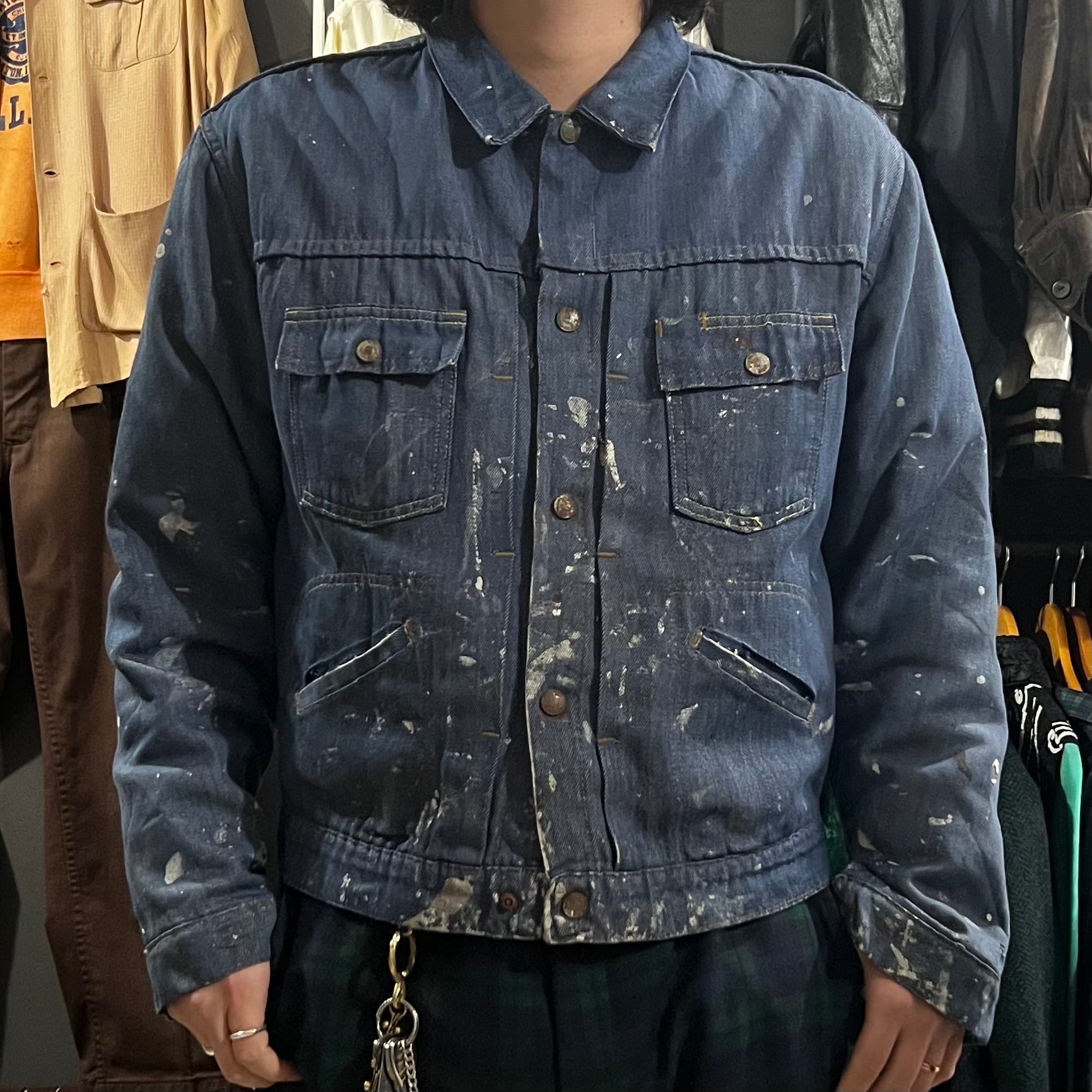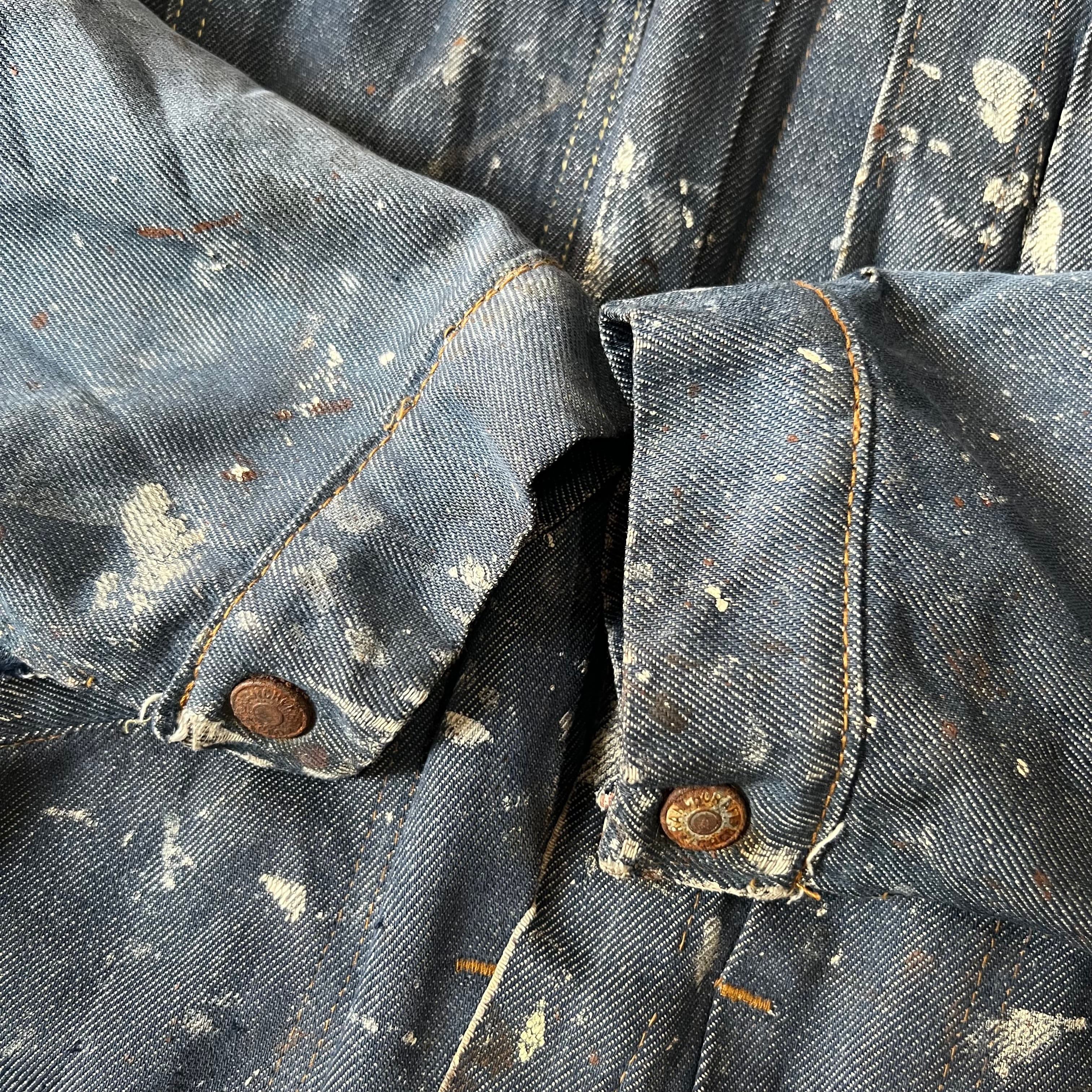 ペンキ飛び、オイルの汚れや錆、古着ならではの表情。