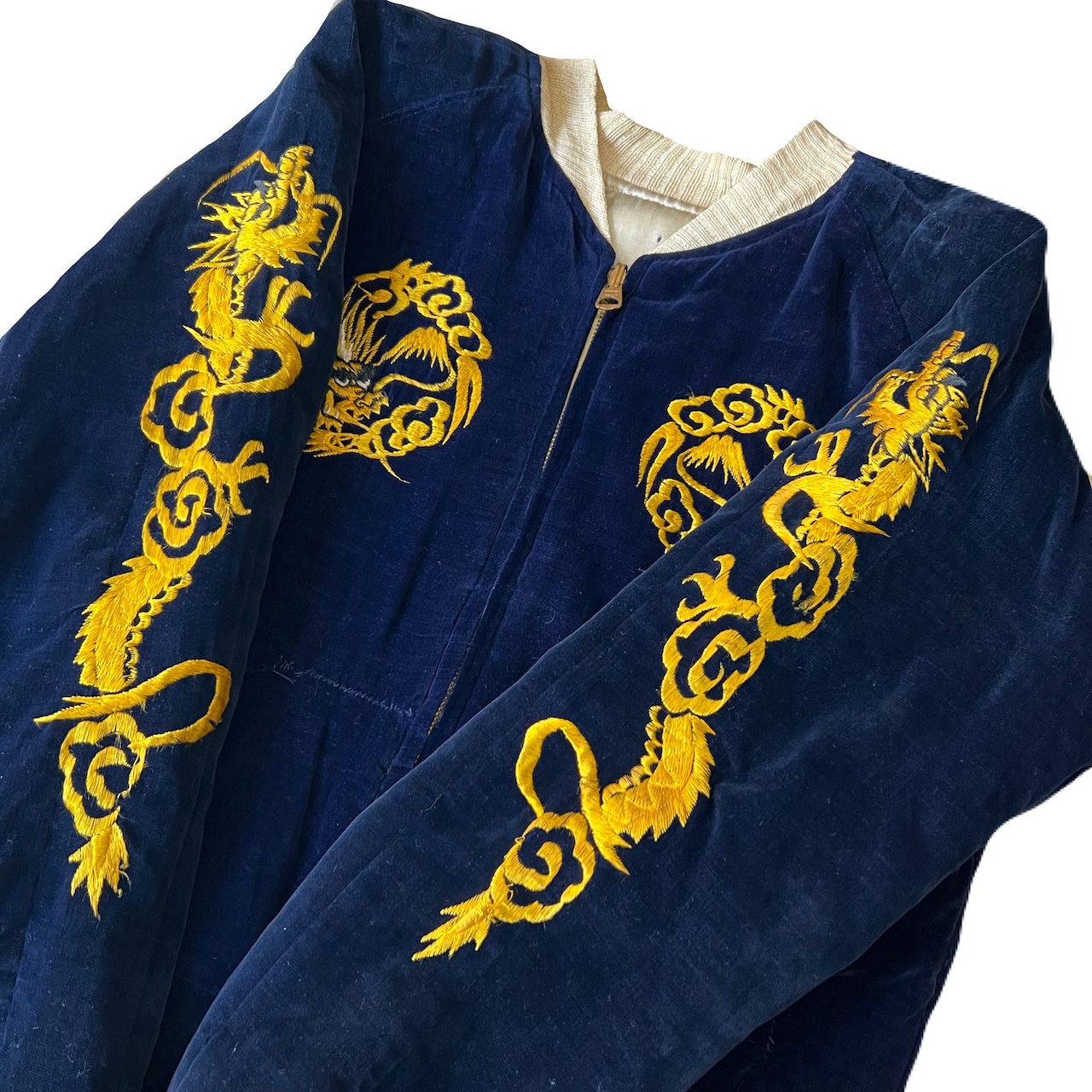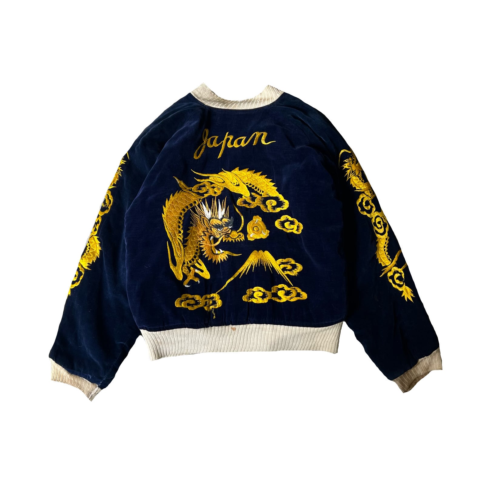 A面は豪華な金龍の刺繍、チープになりがちなB面の鷹の刺繍も良く、JAPAN付き。