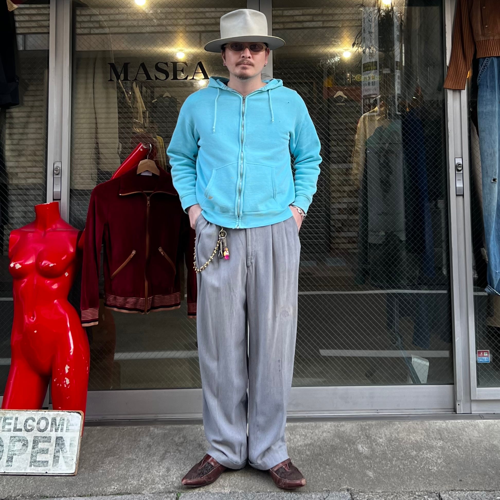 50-60s Vintage rayon×wool “kasuri” wide slacks W33L31