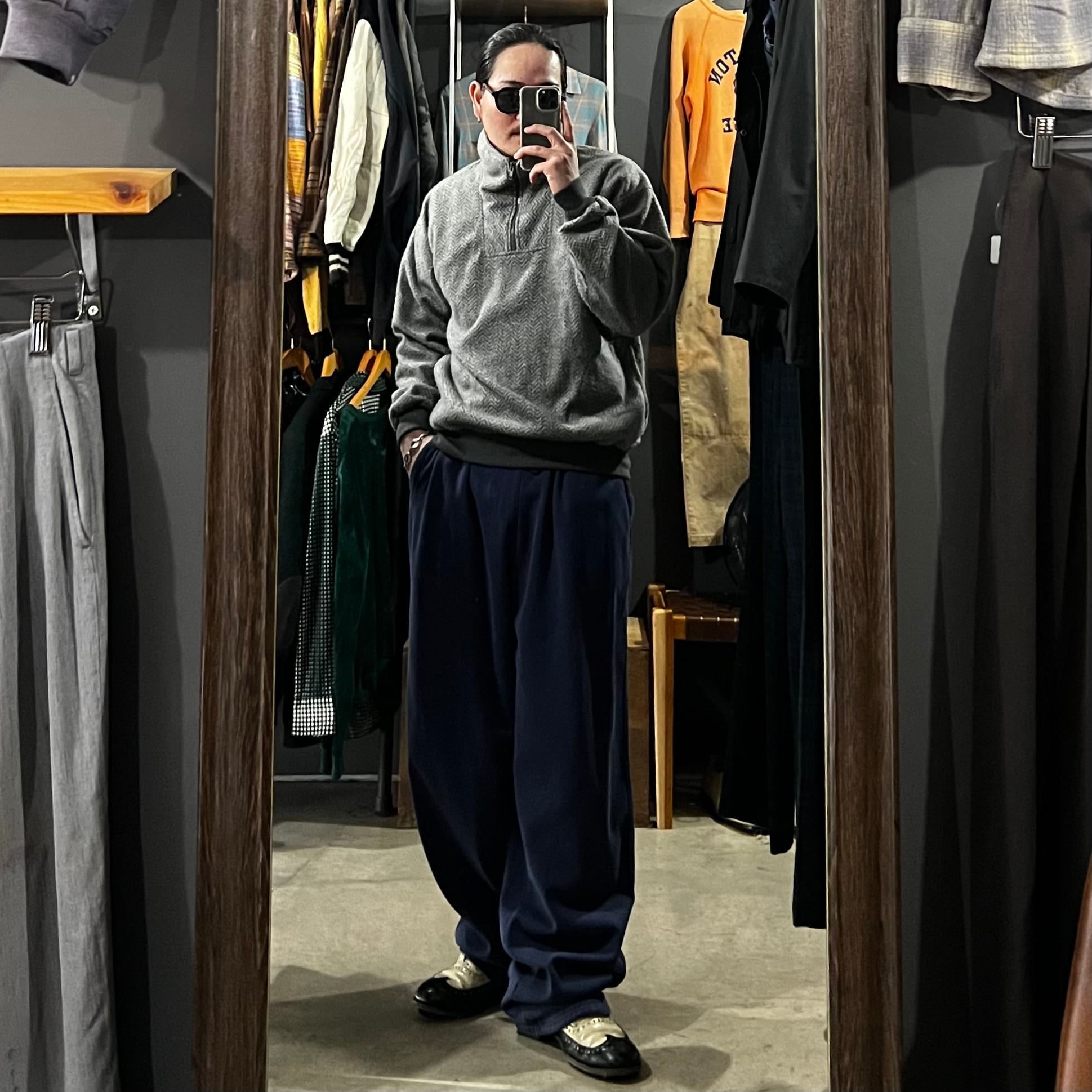 ドローコードの付いた裾で絞りの無い程よくテーパード効いたシルエット。
