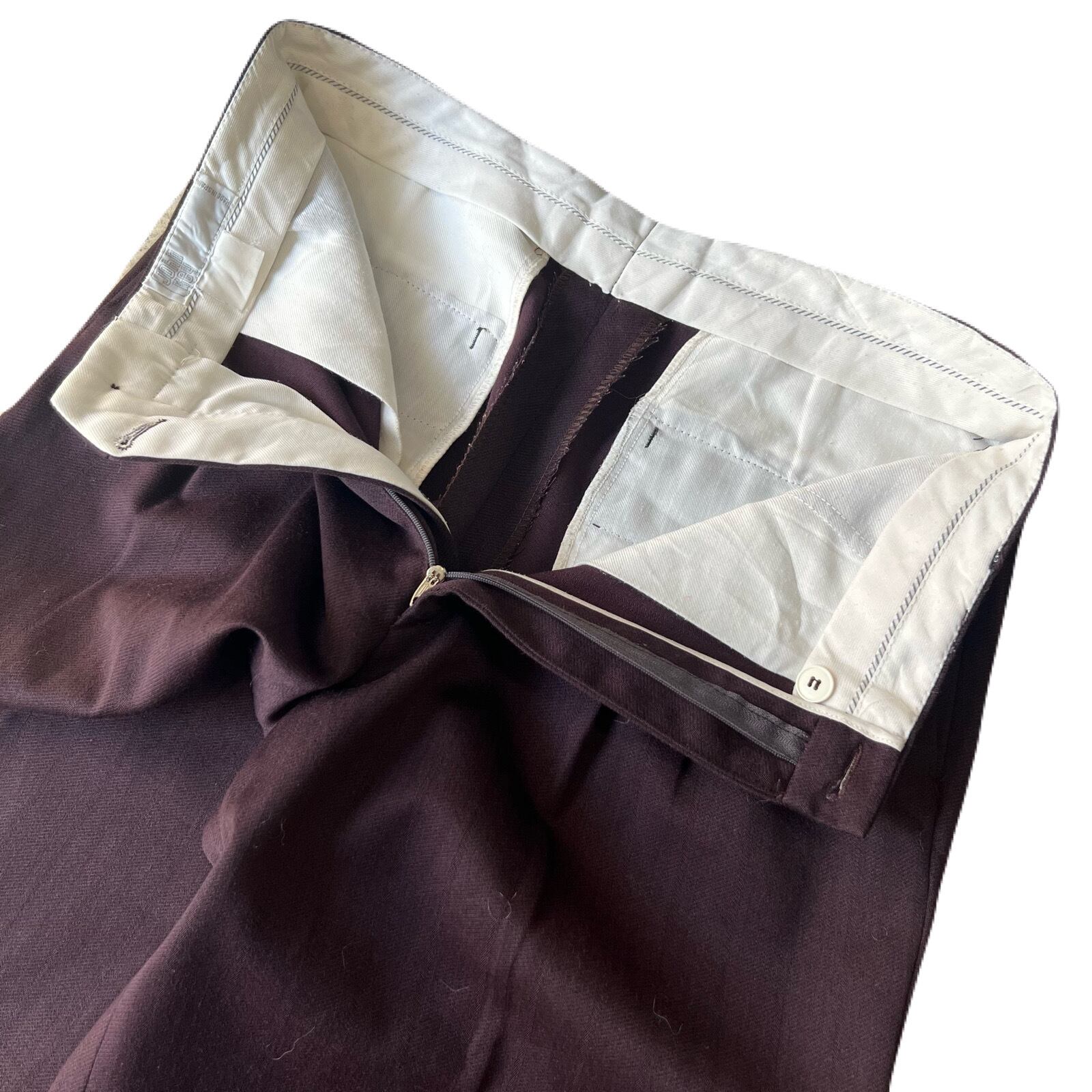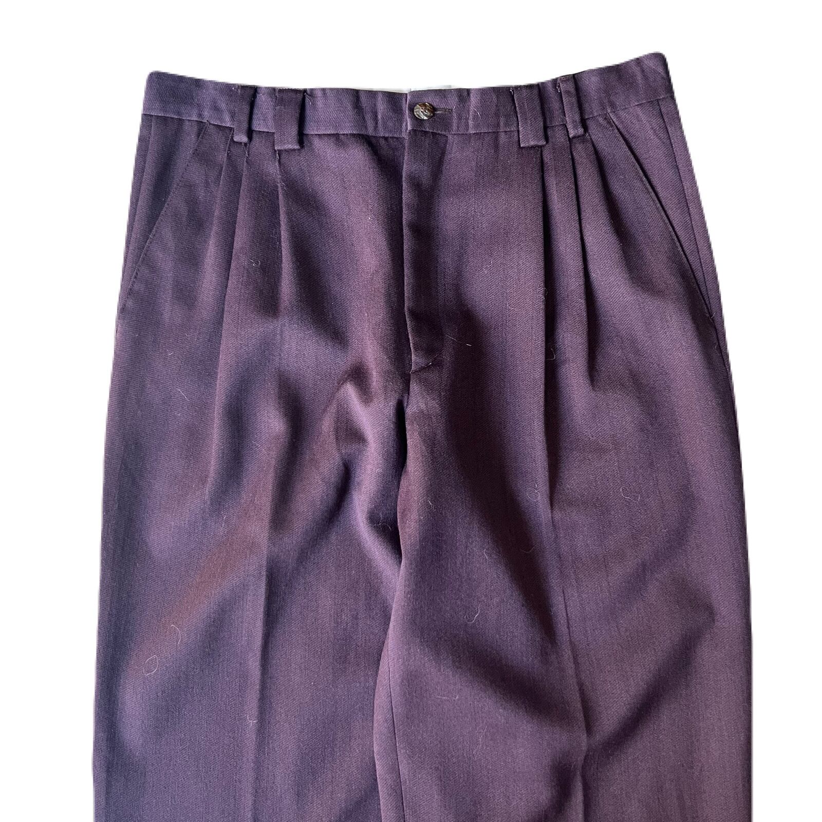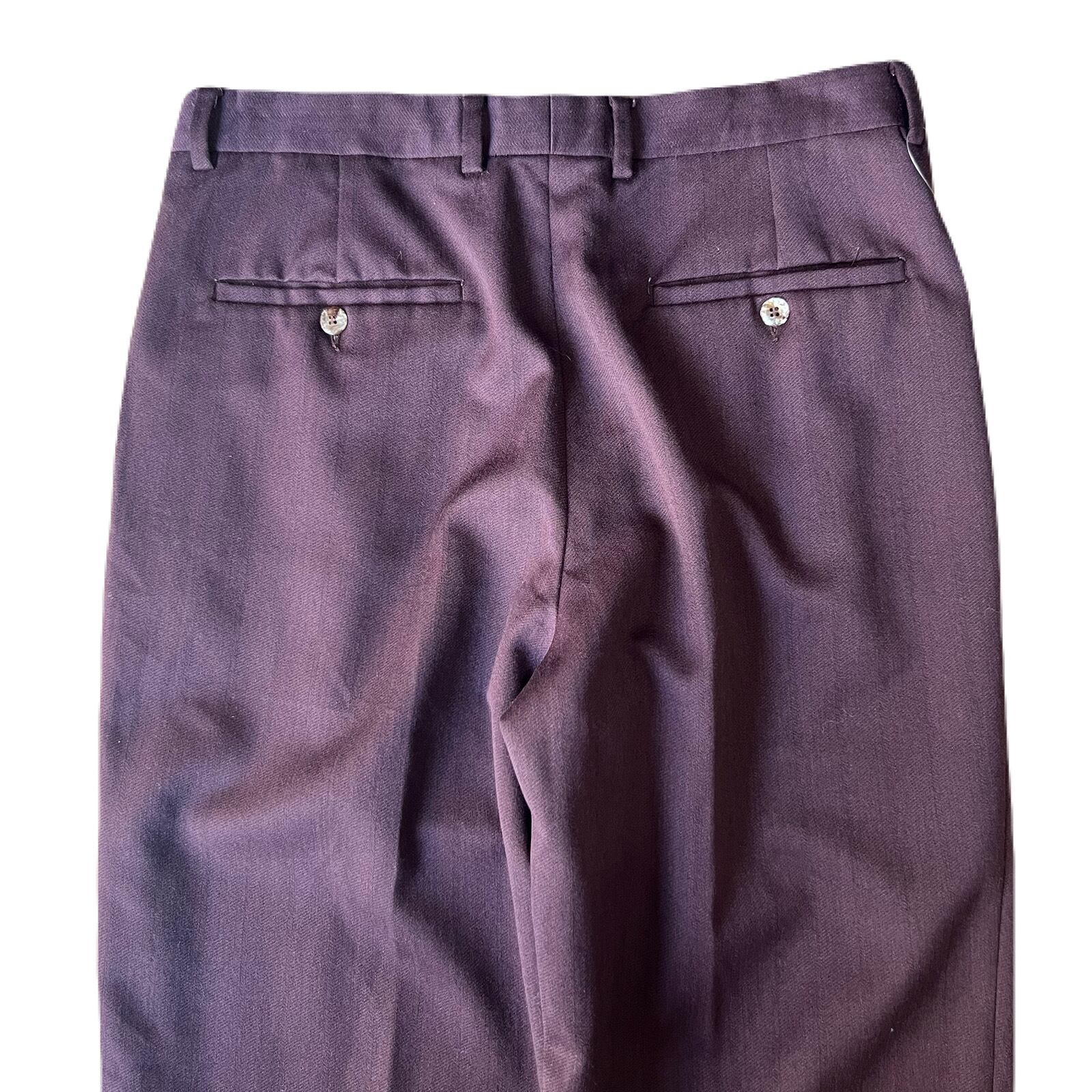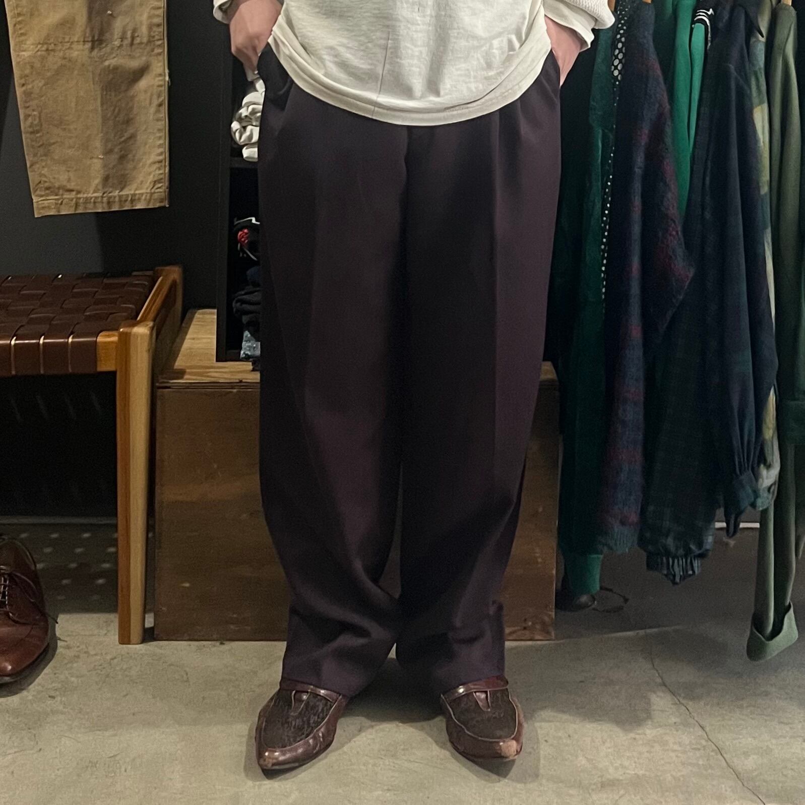 洒落たガラスボタン、3タックで程よくテーパードの効いた、ワイドに履けるサイズ感。