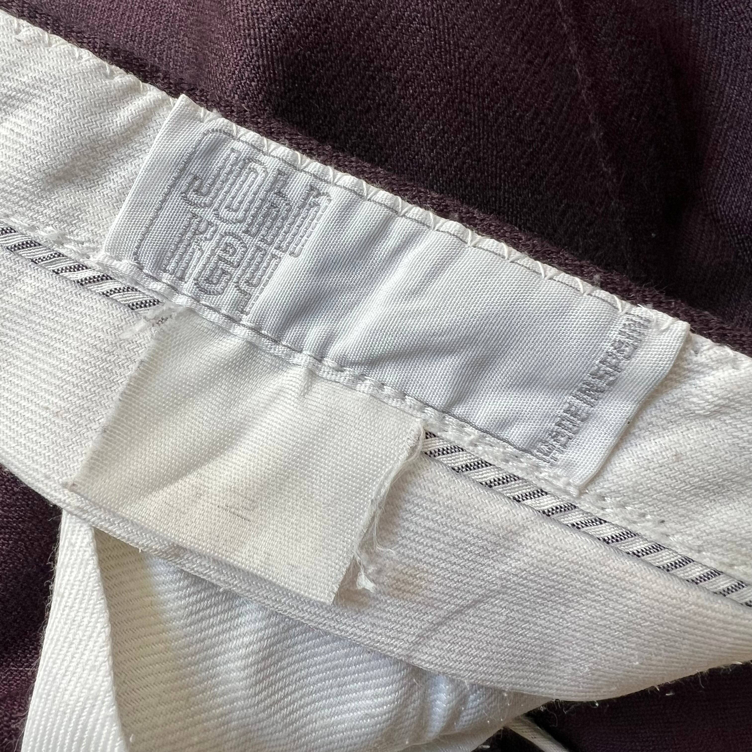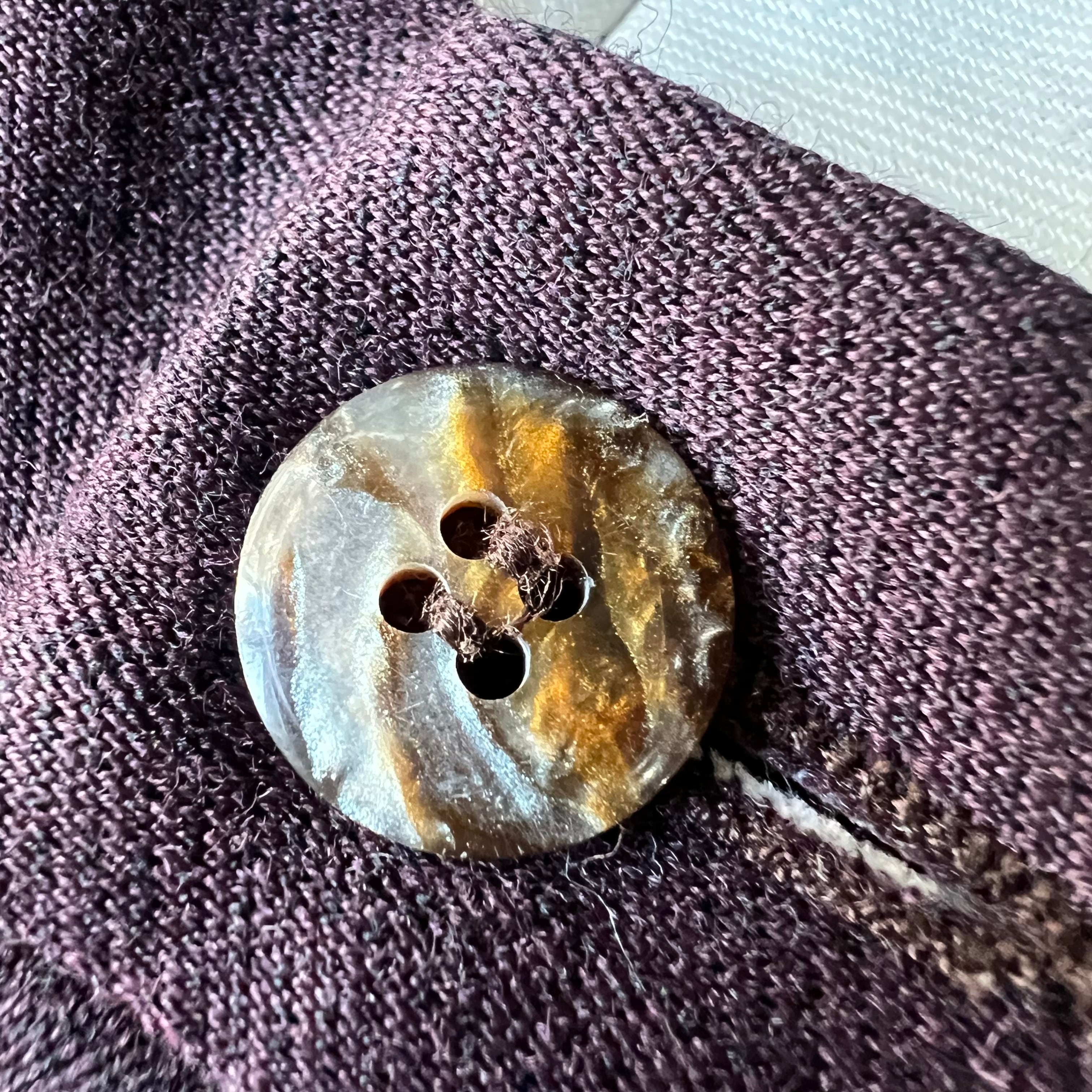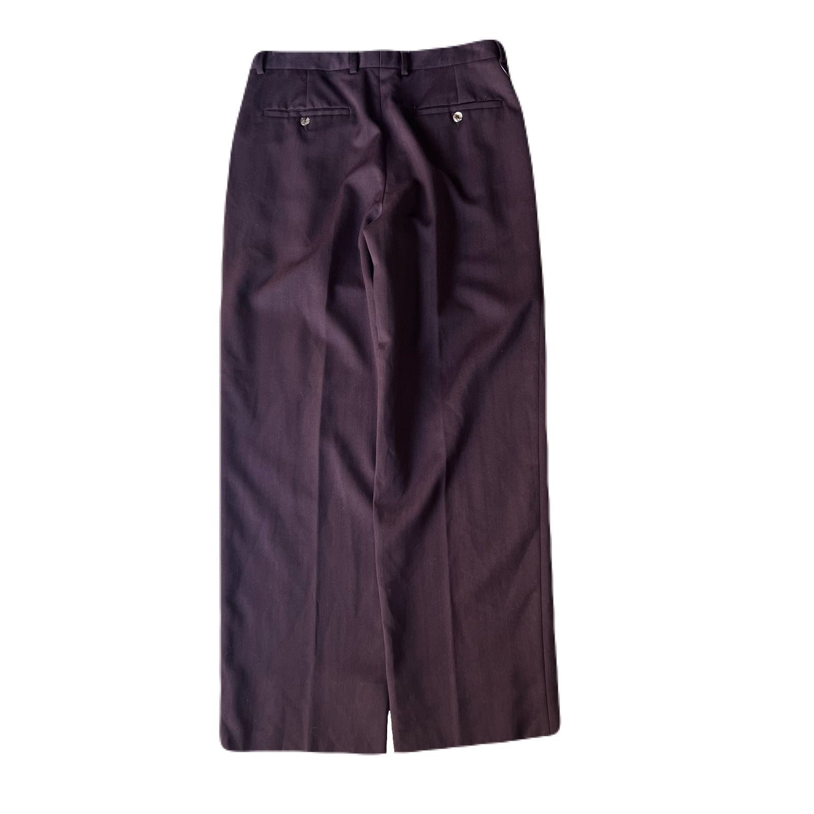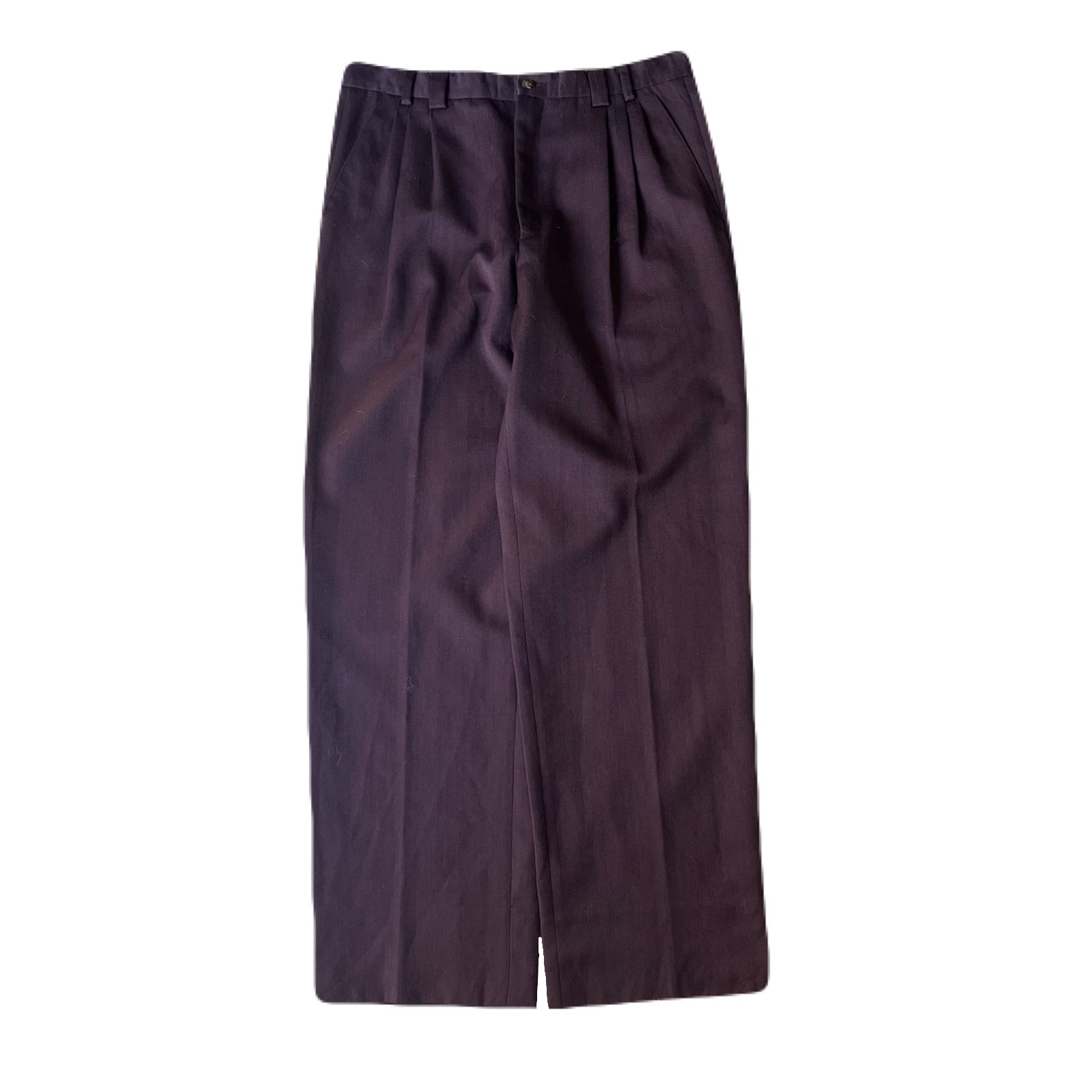 洒落たガラスボタン、3タックで程よくテーパードの効いた、ワイドに履けるサイズ感。