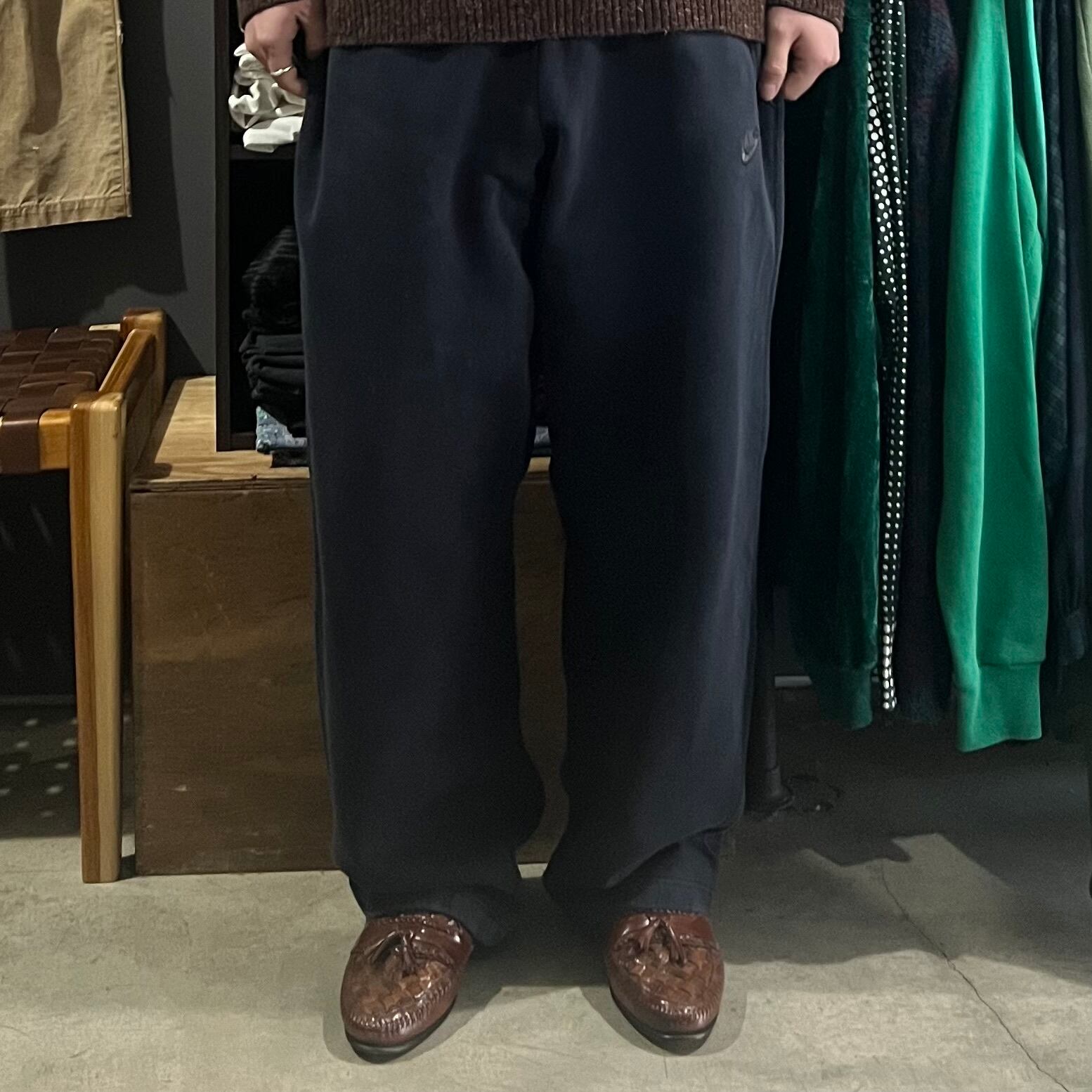 ブラックに近い暗めなネイビーボディーのスウェットパンツ。