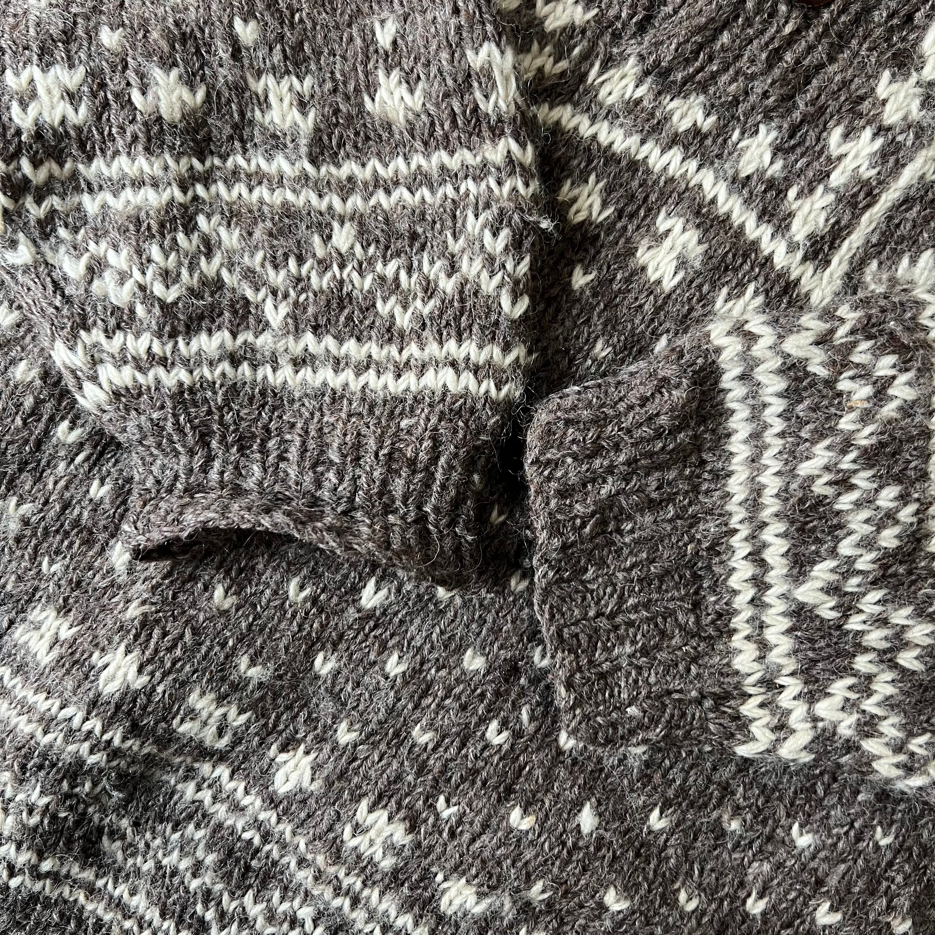 ブラウンにアイボリー、レトロなカラーリングのノルディックセーター。
