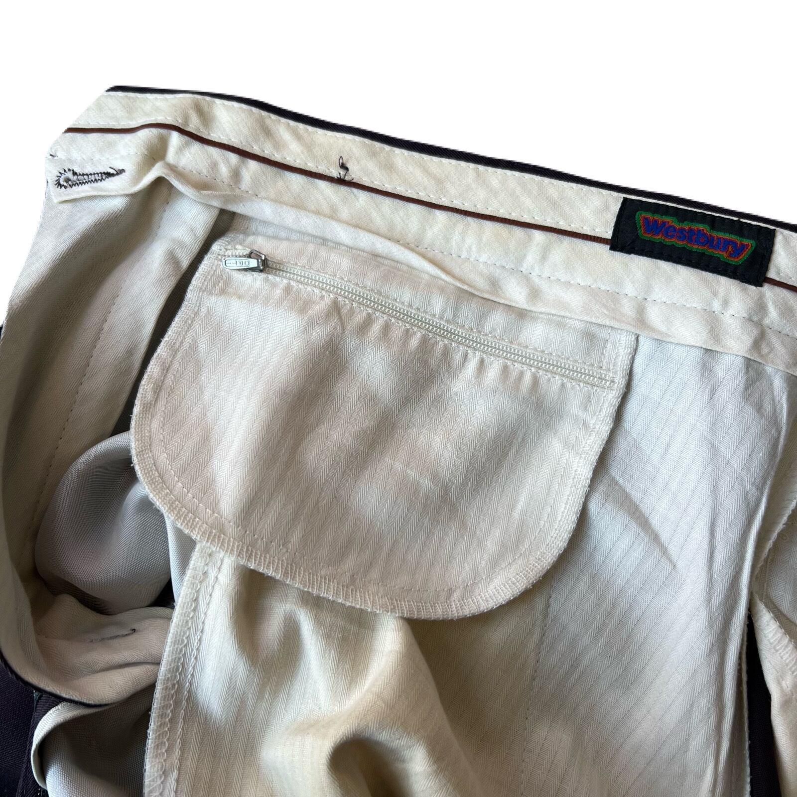 フロントのウエストにはジップポケット付き、膝下まで裏地付きと気の利いたディティール。文句無しのサイズ感かと。