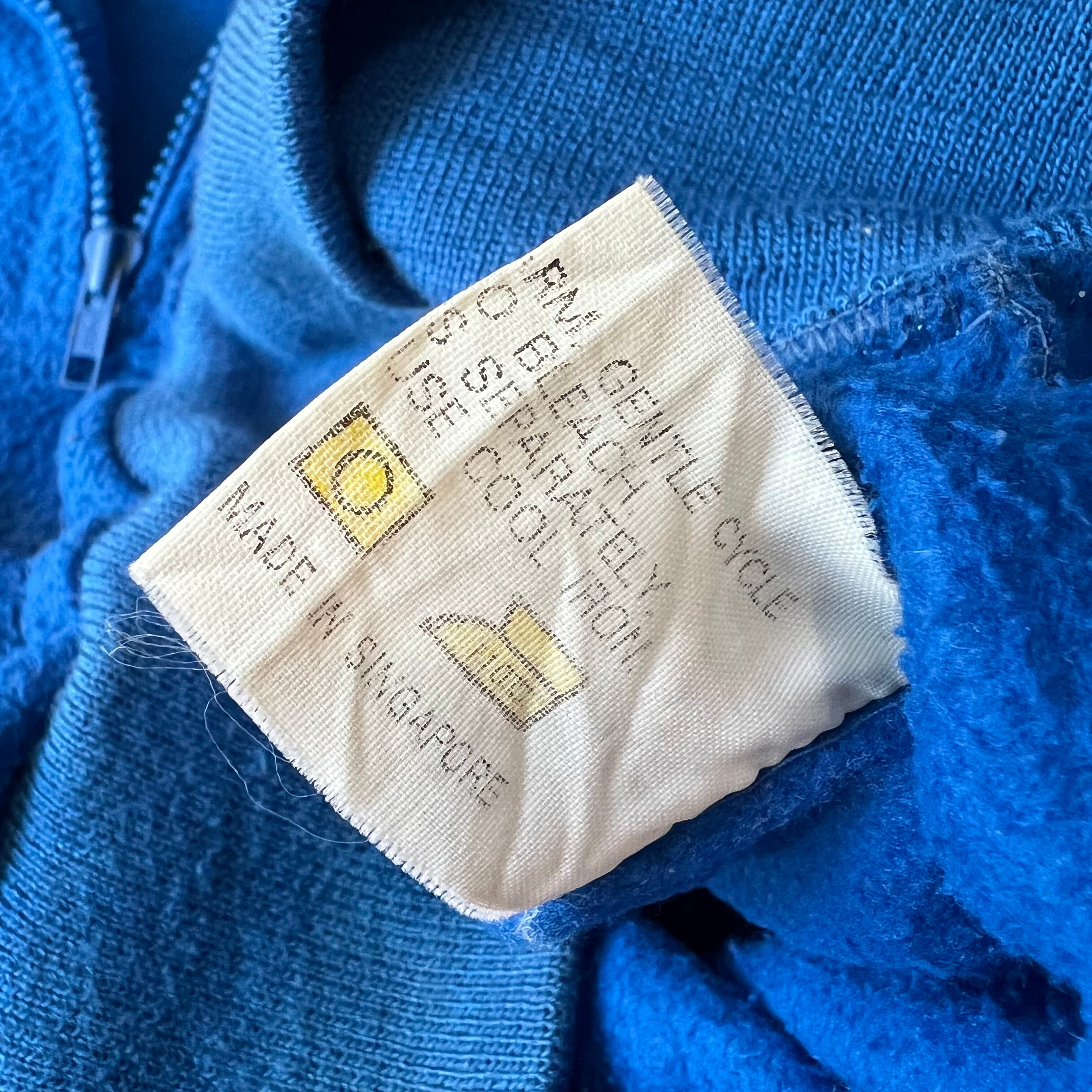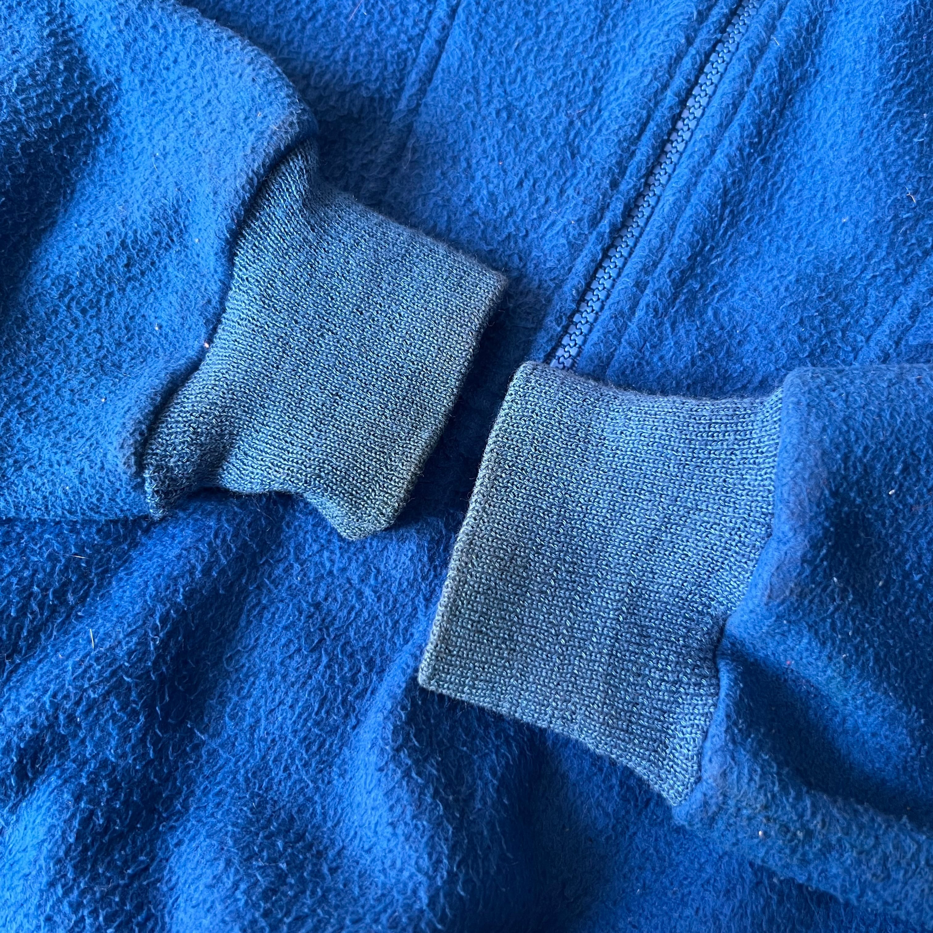 シンガポール製の発色の良いブルーボディーのフリース素材。