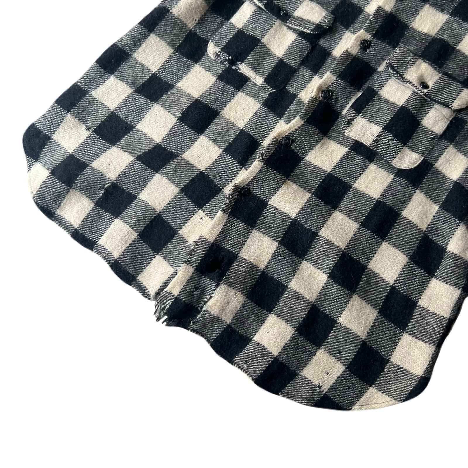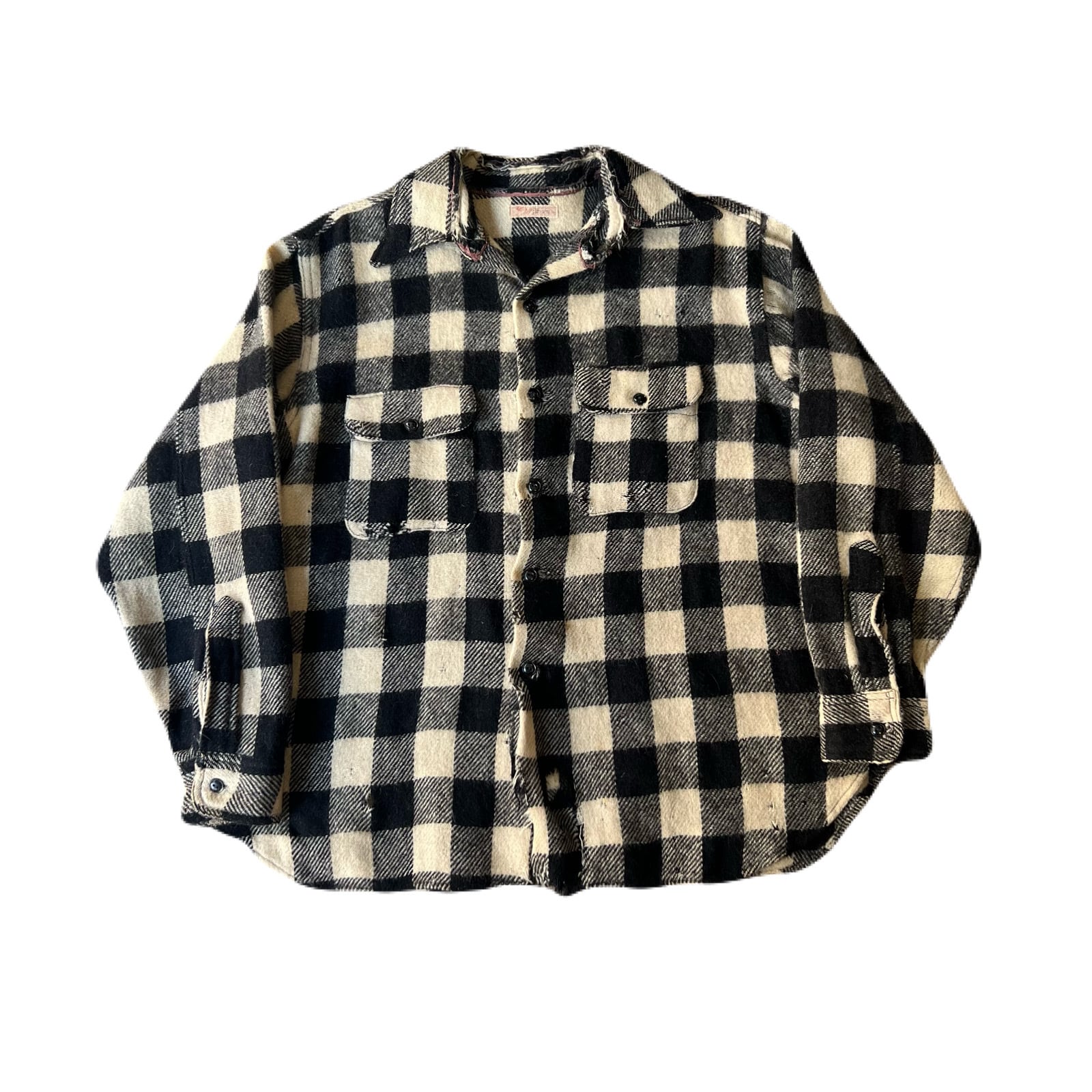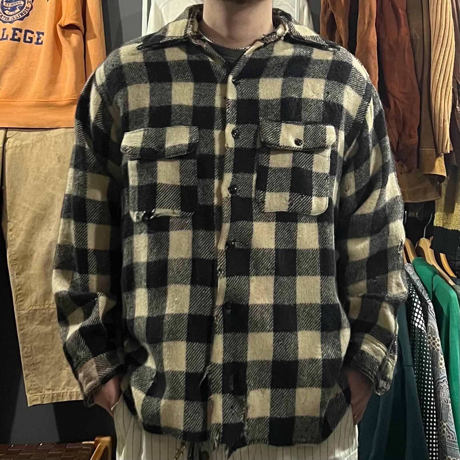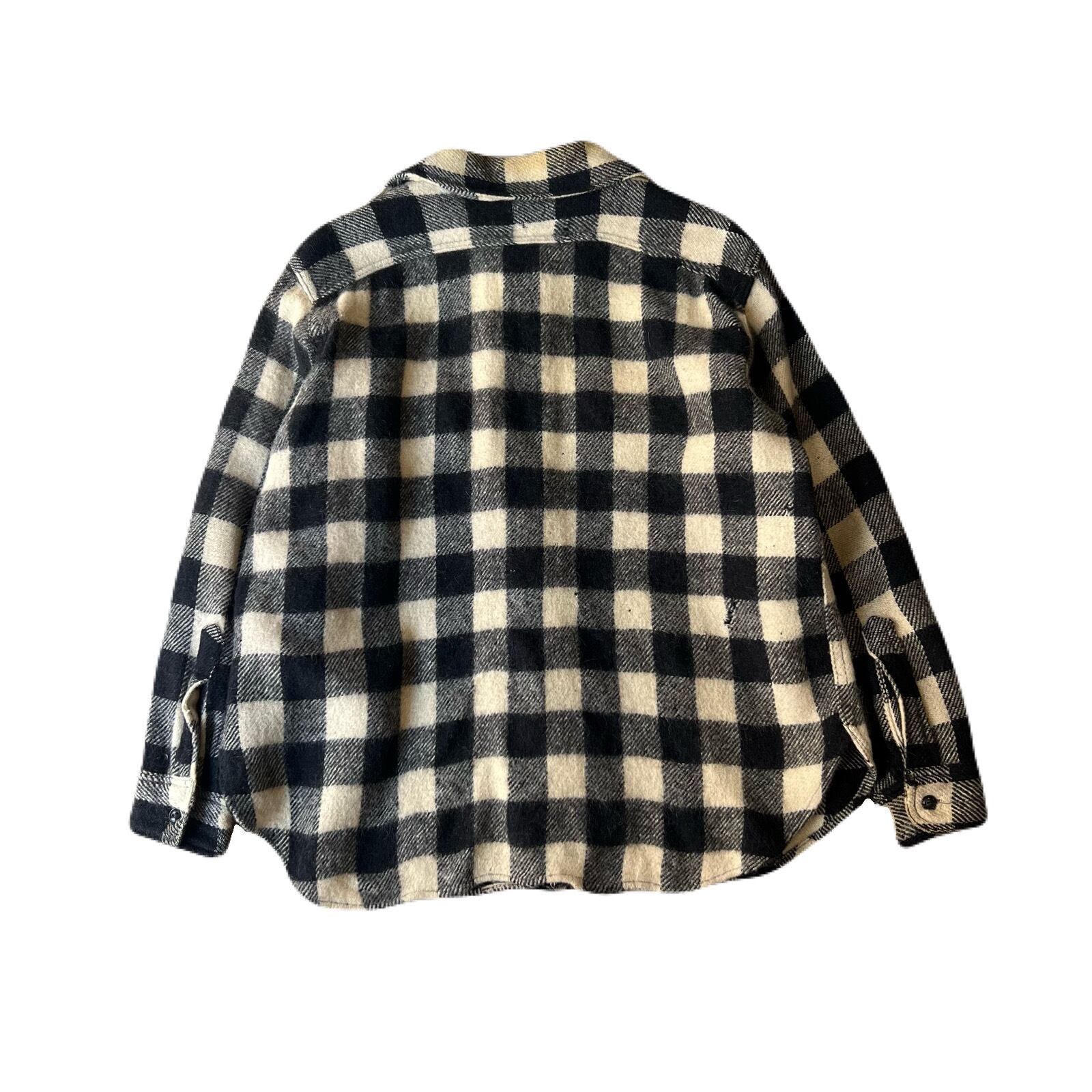 40s Vintage wool check “マチ付” shirt 16 1/2