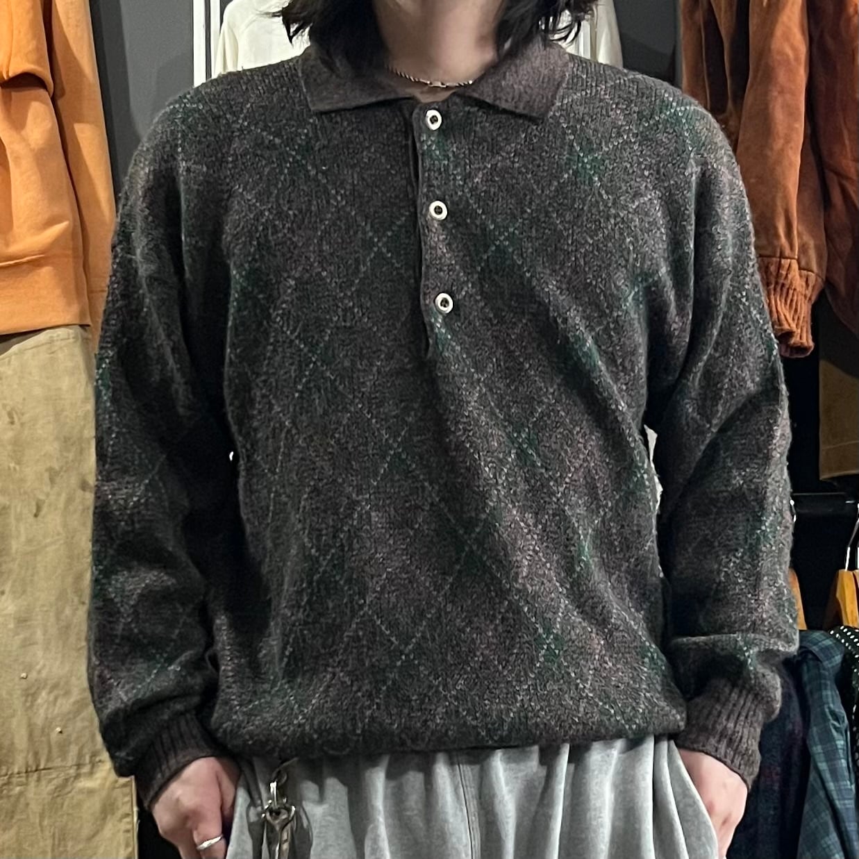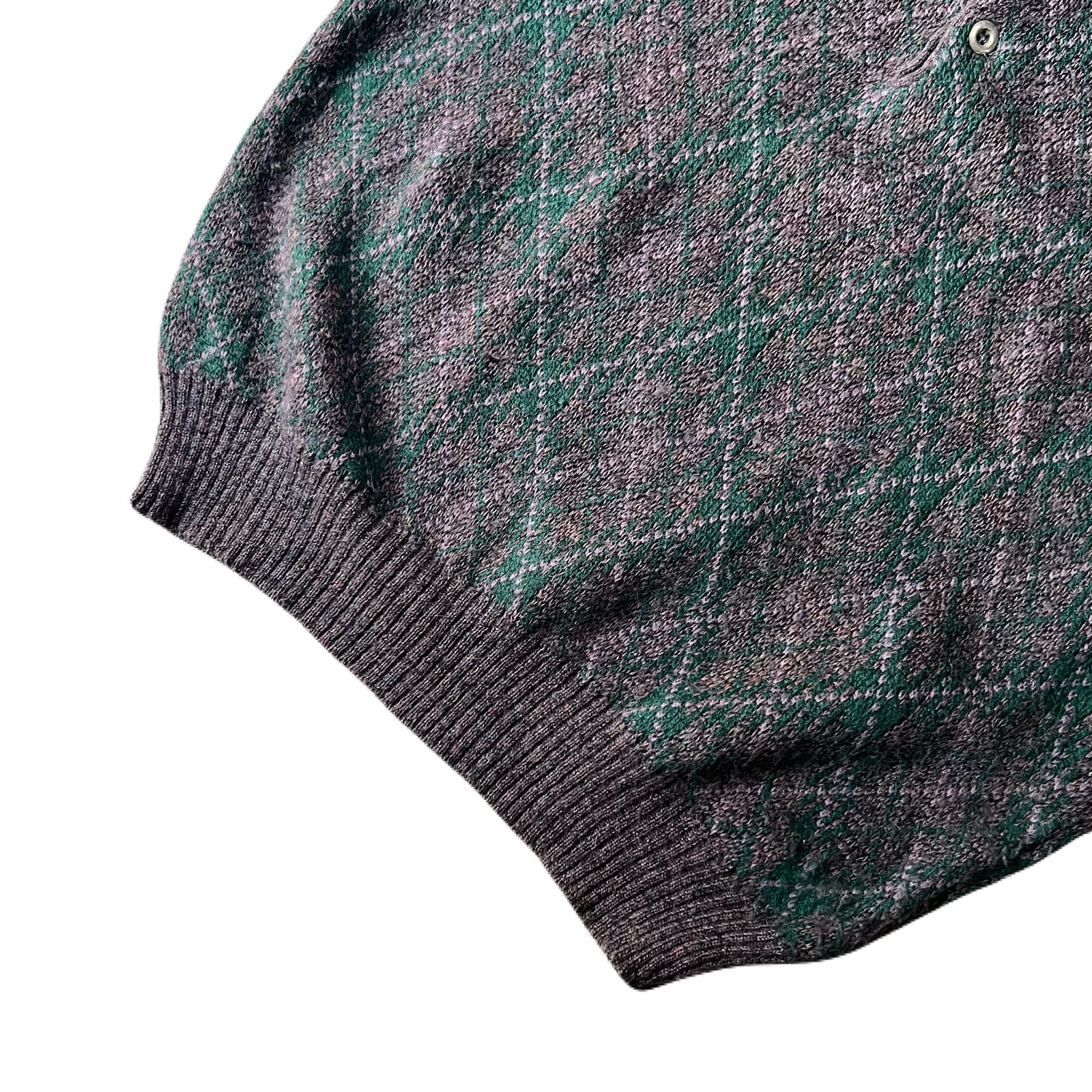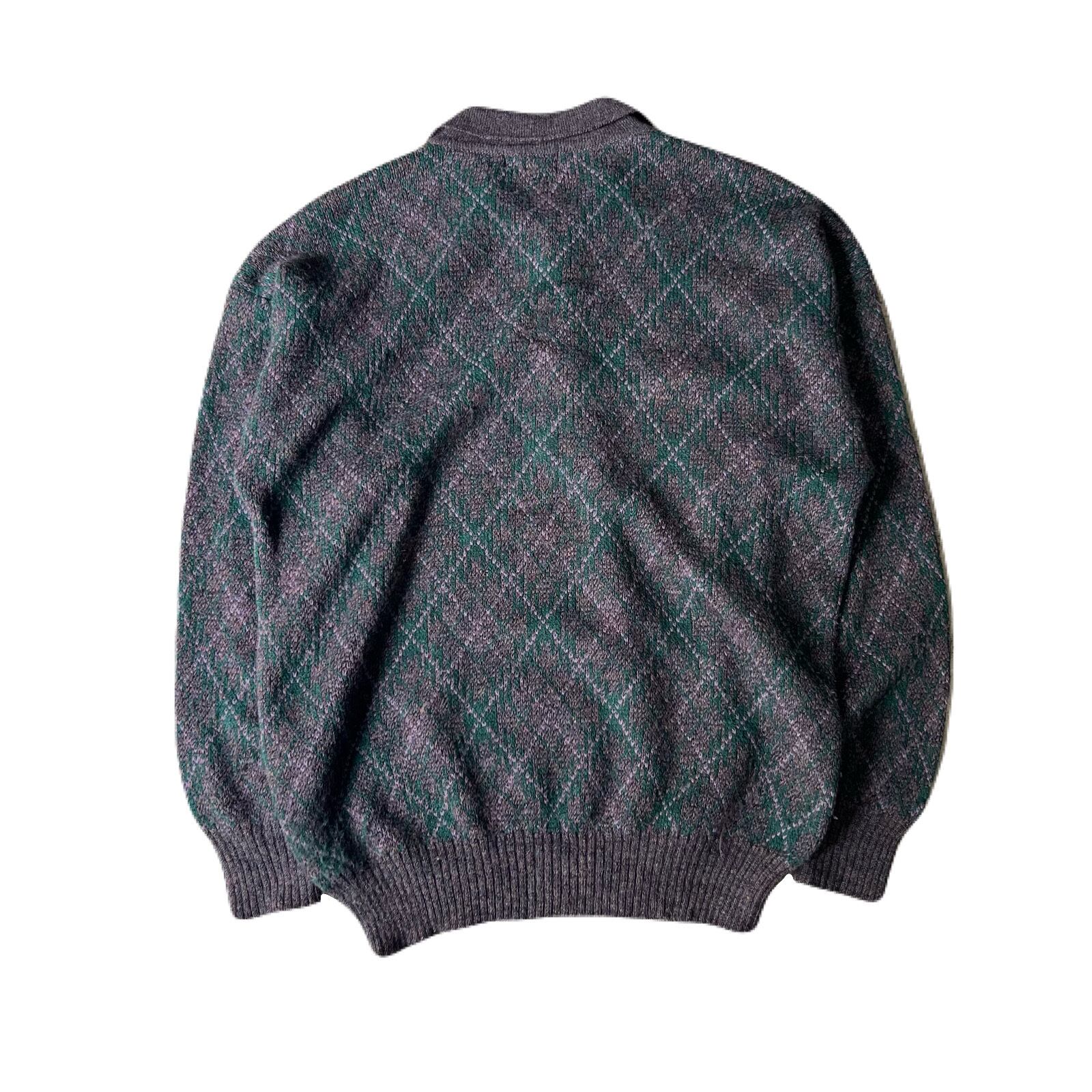 80s acrylic×wool×moire×polyamide diamond pattern knit polo