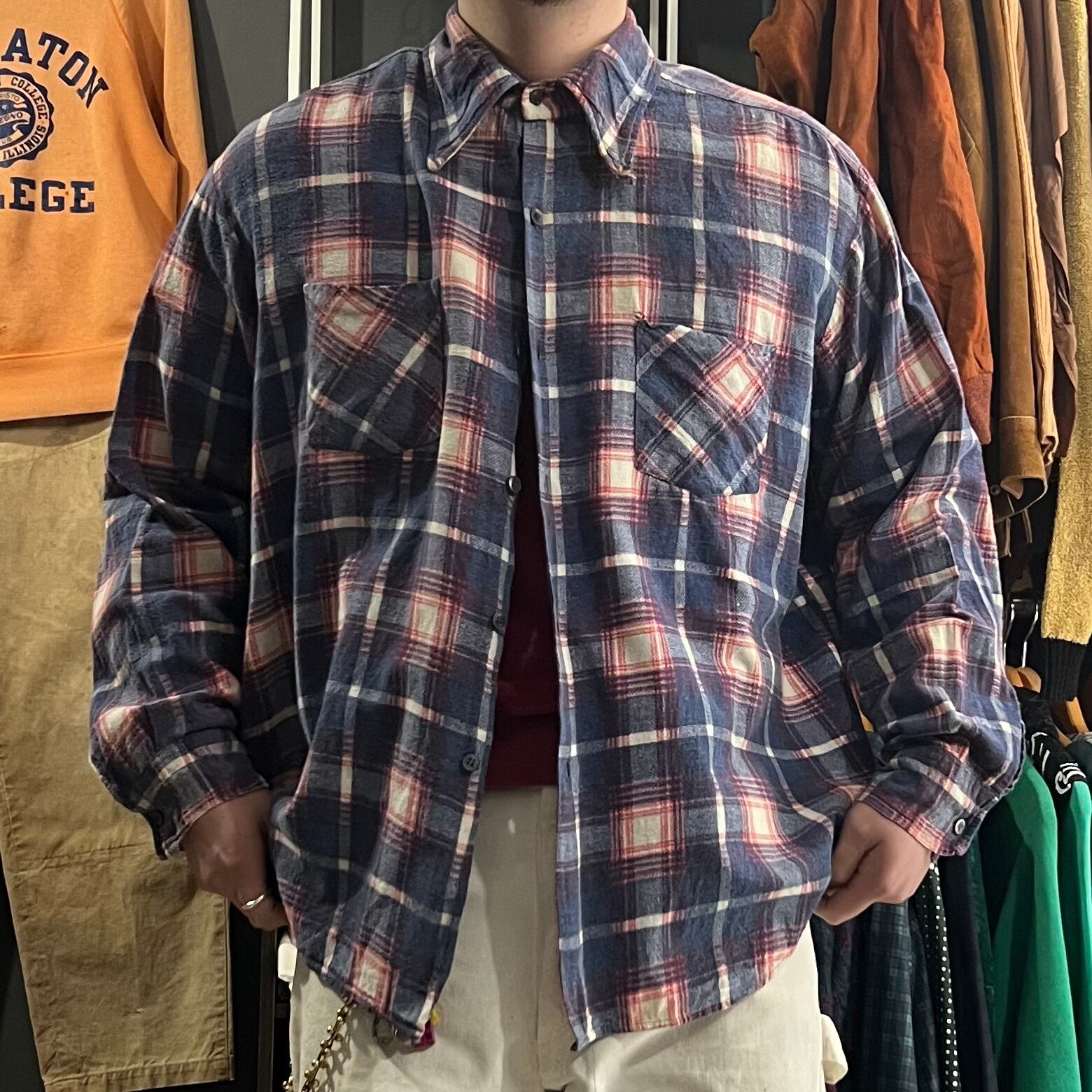 70s MONTGOMERY WARD cotton print flannel check shirt XL