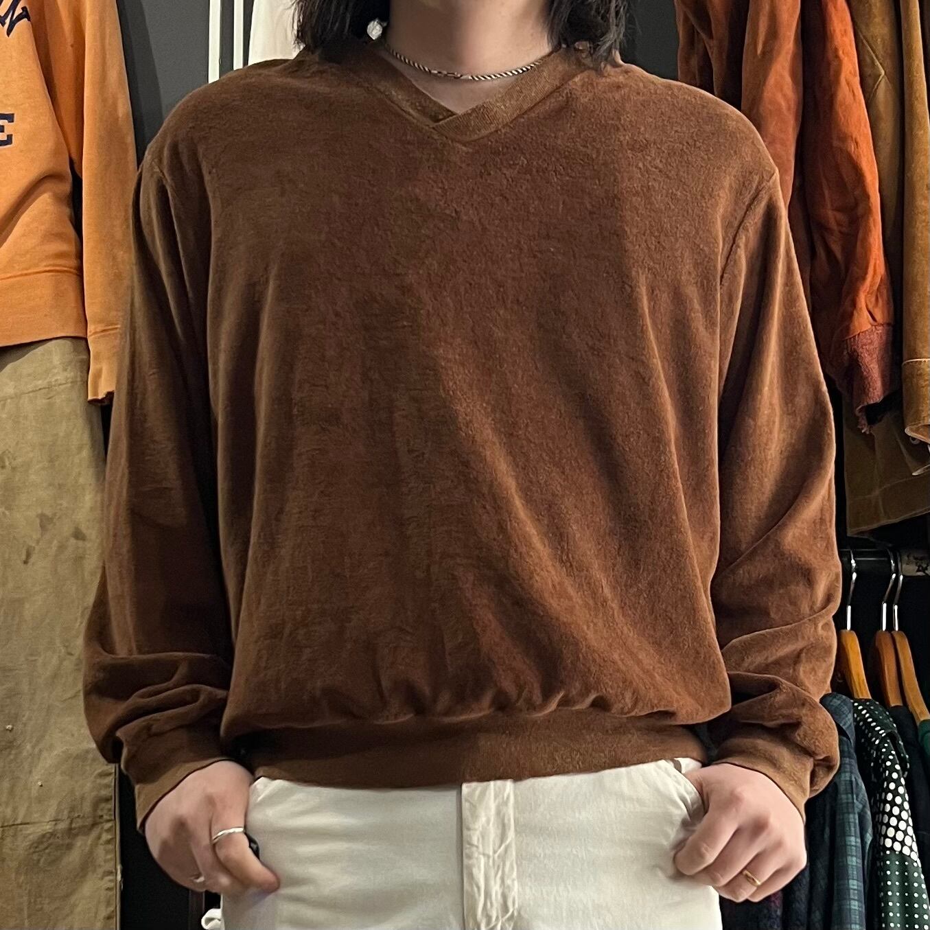 70-80s Velour cotton×polyester v-neck pullover