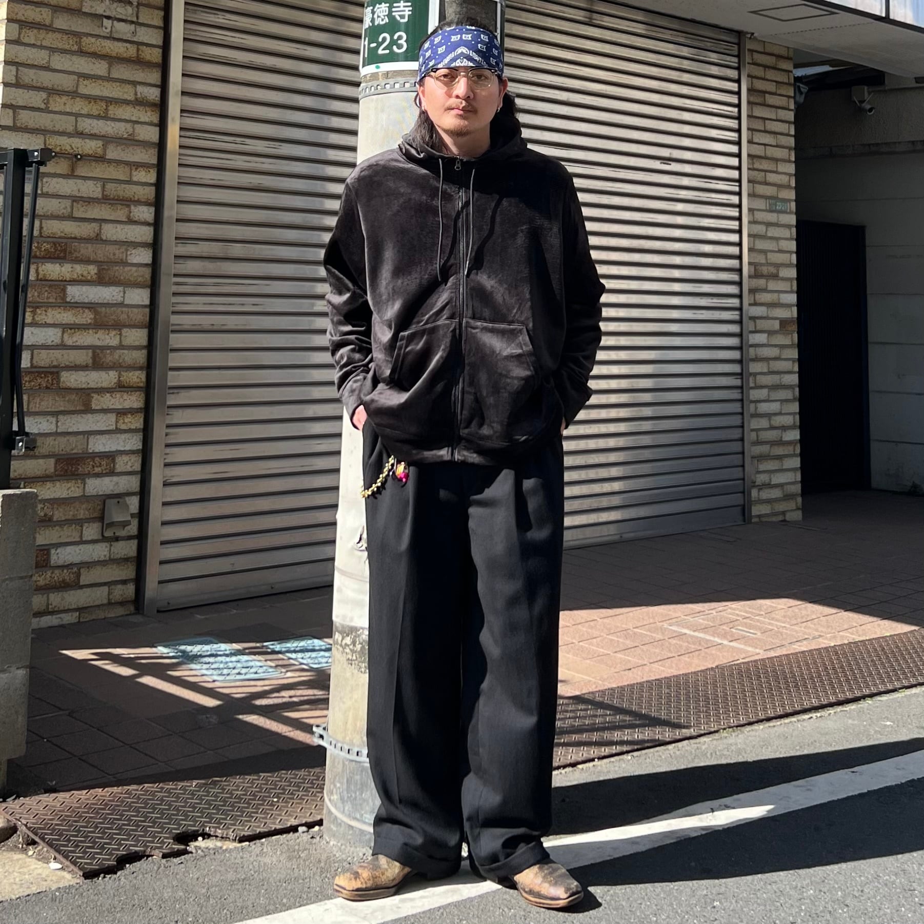 センタープレスの残ったワイドストレートに落ちるシルエット。