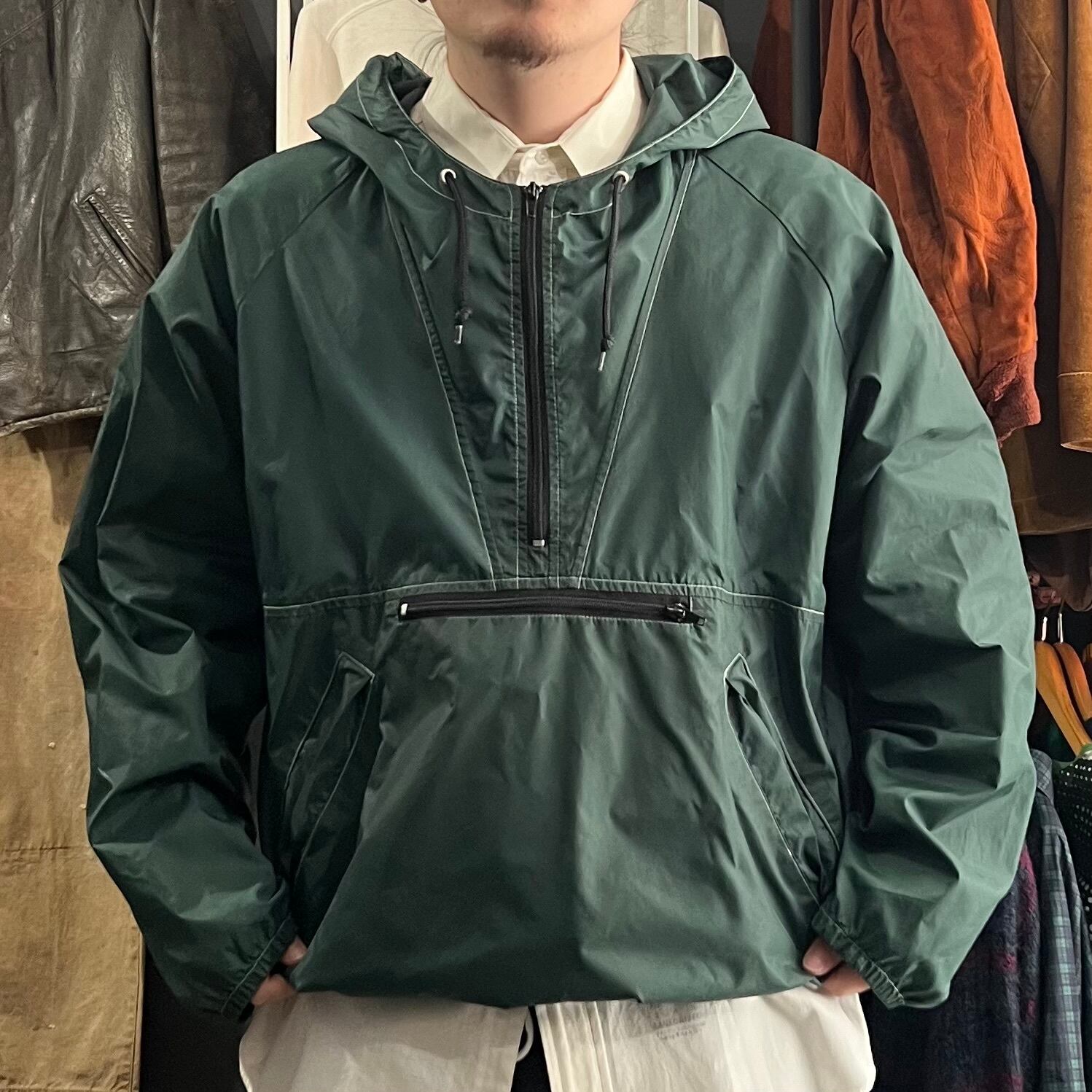 深いオリーブにホワイトのステッチが目を引くアノラックパーカーが入荷。