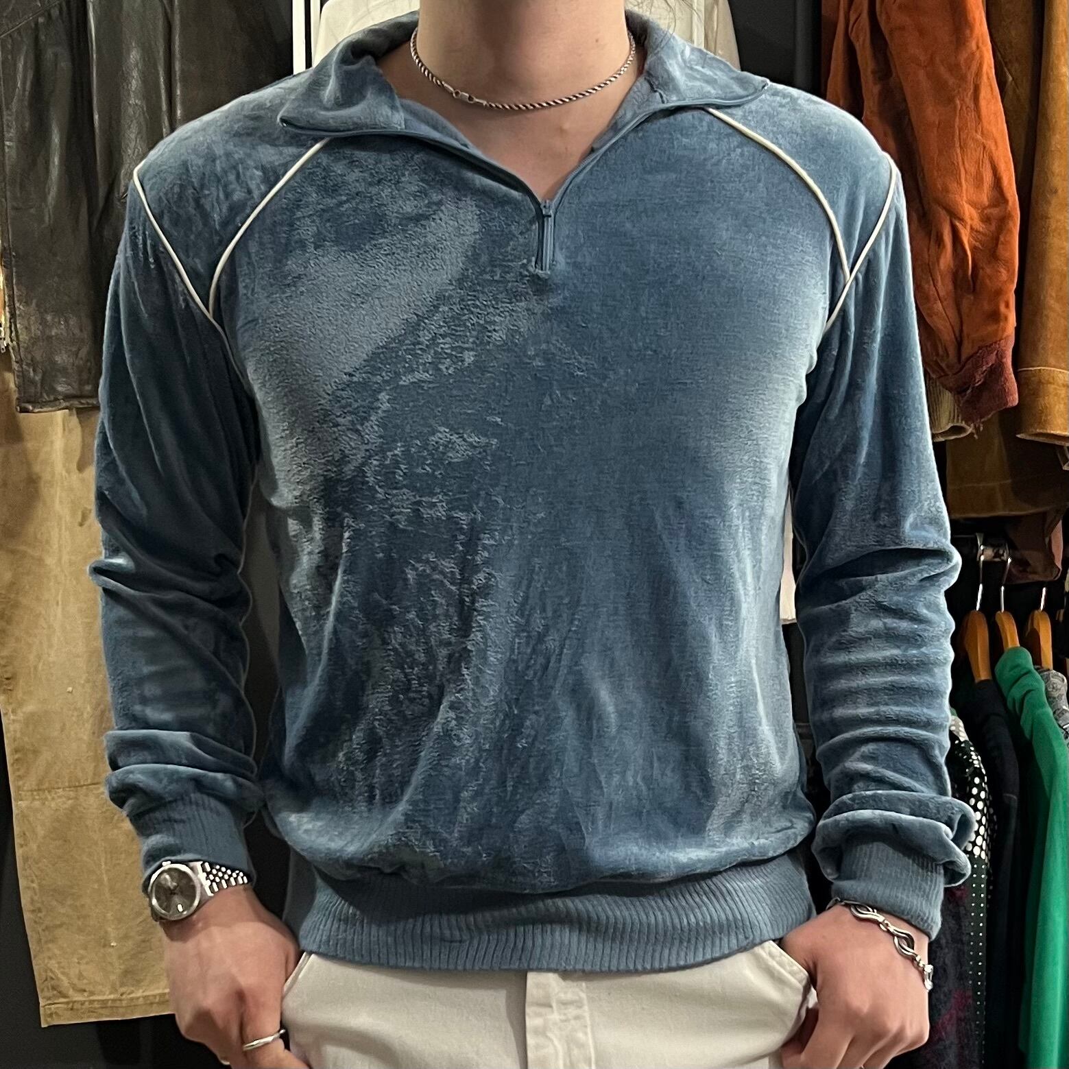 70-80s Richman velour harf-zip pullover M
