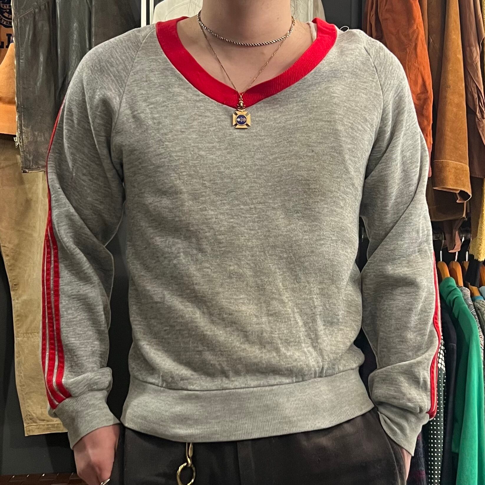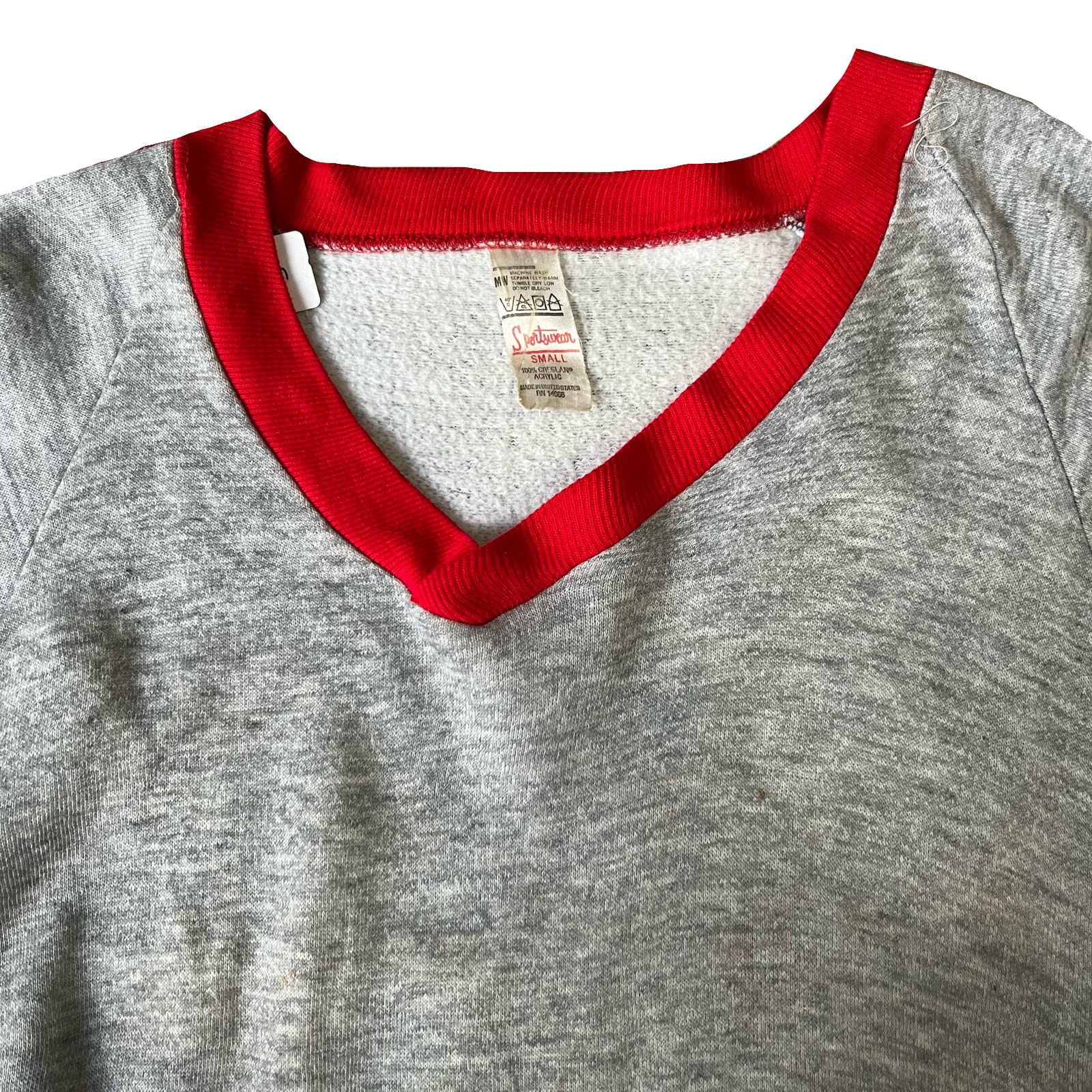 70s Sportswear acrylic raglan sleeve v-neck sweat shirt S