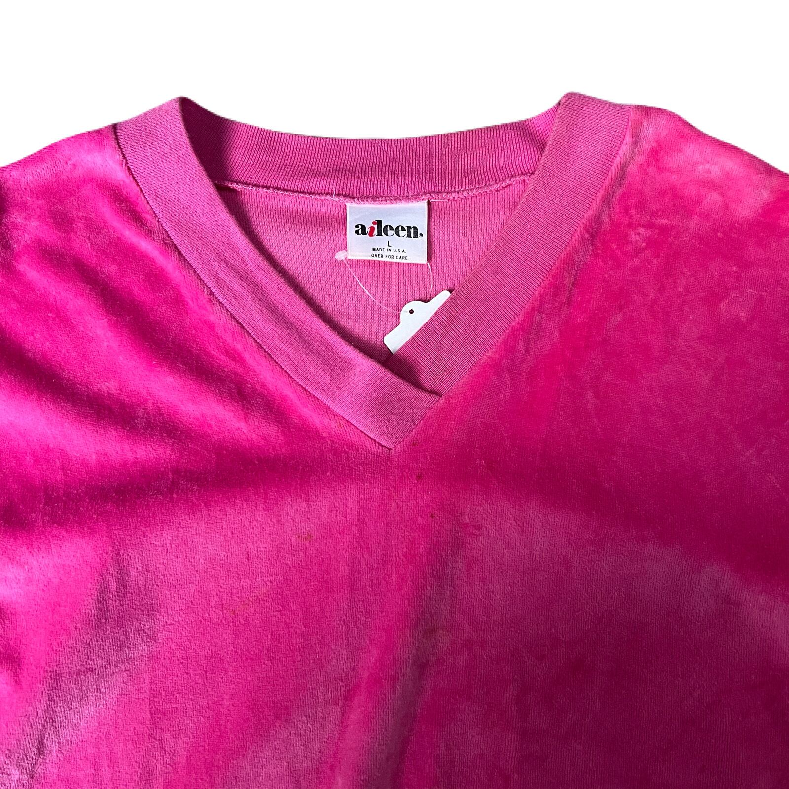 80s aileen cotton×polyester? velour v-neck pullover L