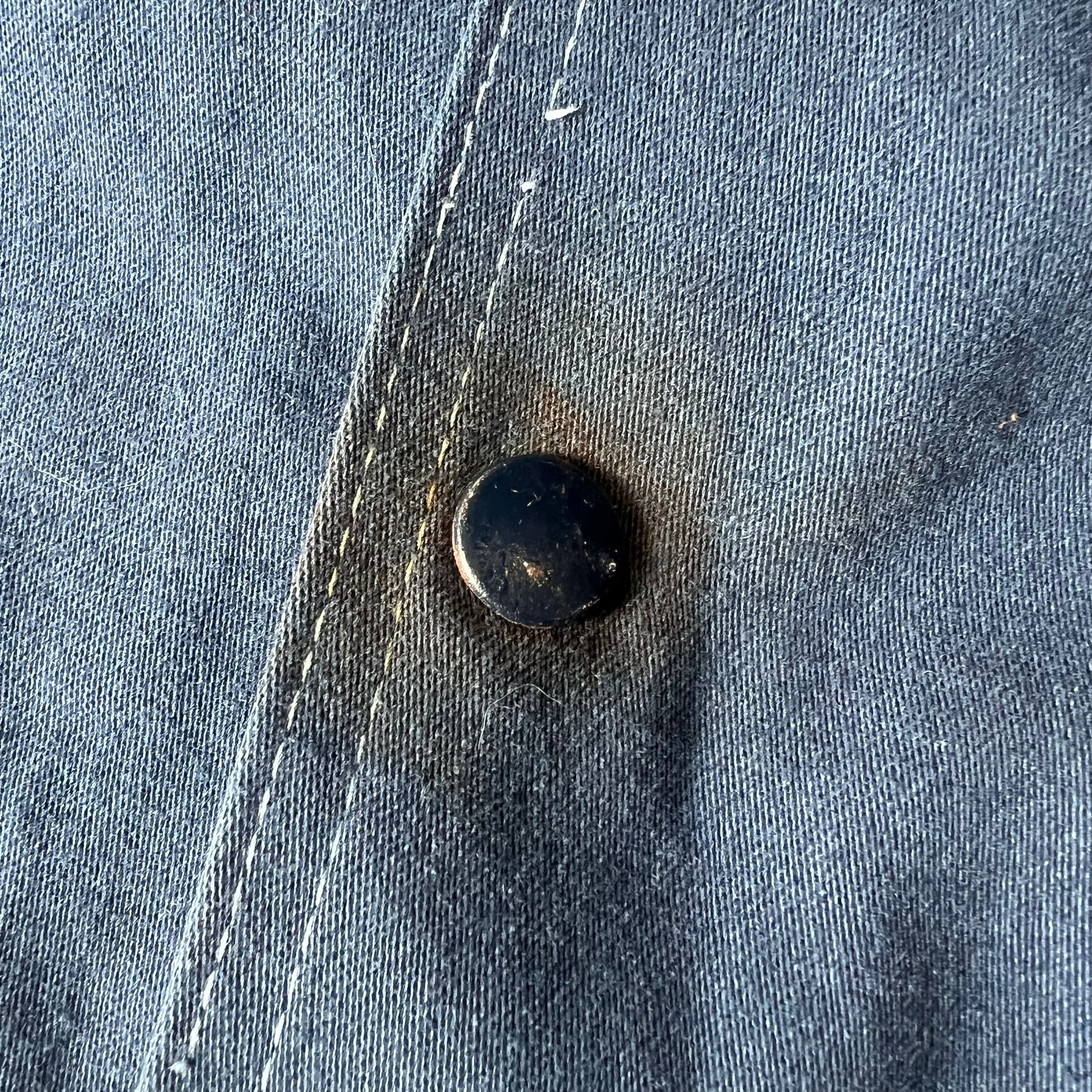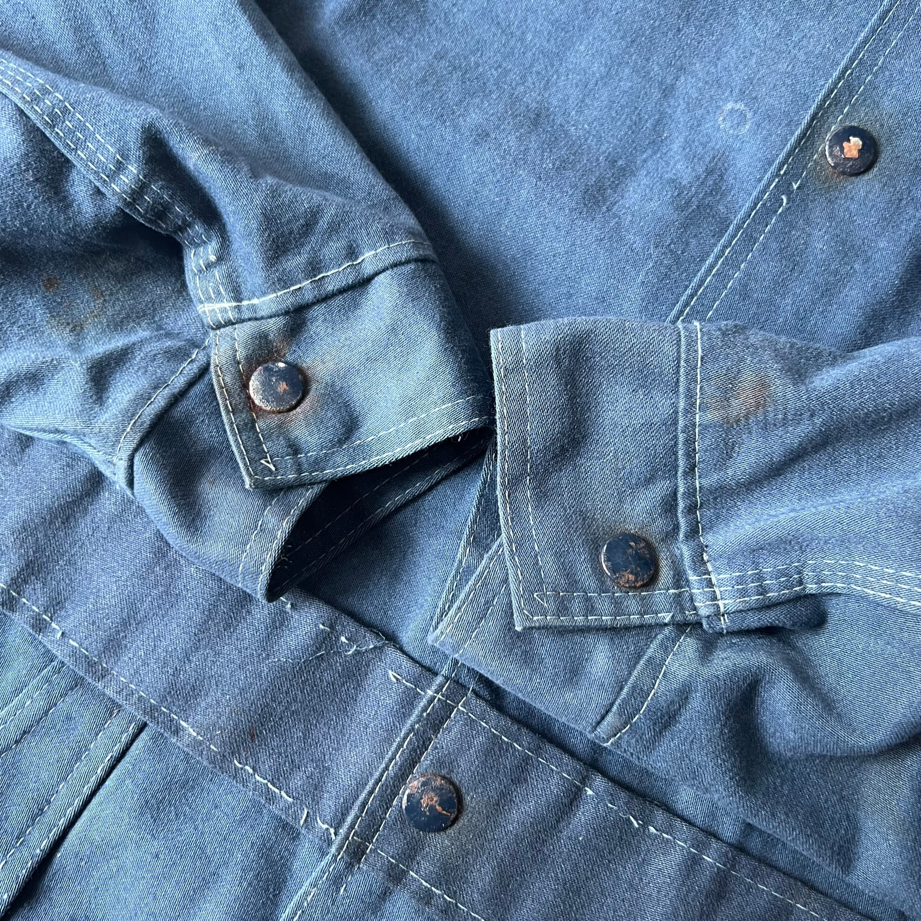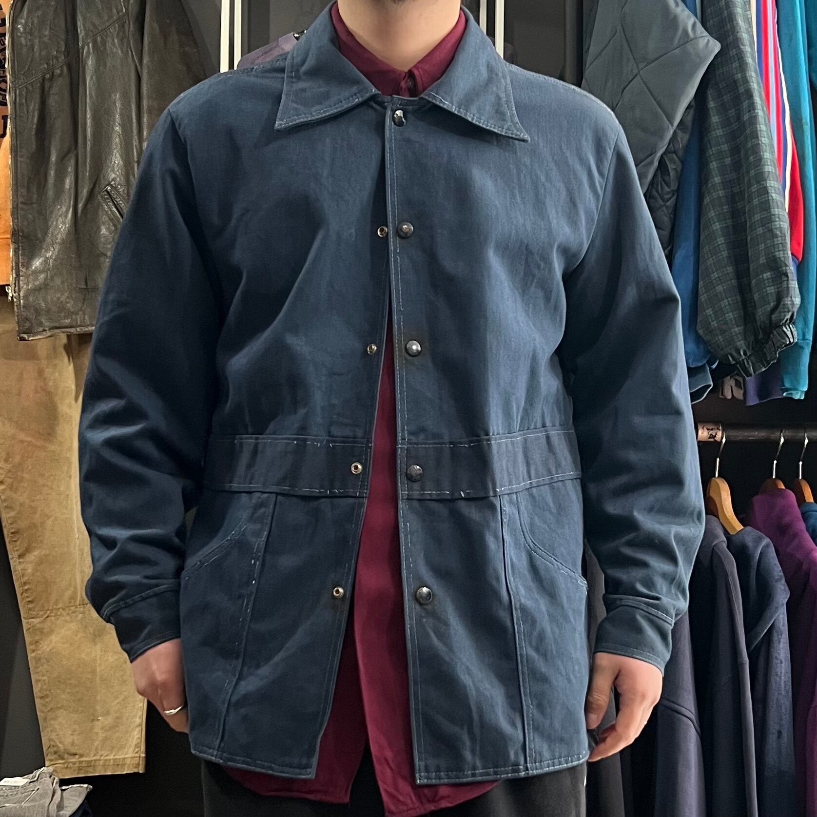 この年らしい襟でフロントには洒落たパッチポケットが2つ、スナップボタン仕様でサイドにはスリット付きと作りも洒落てます。