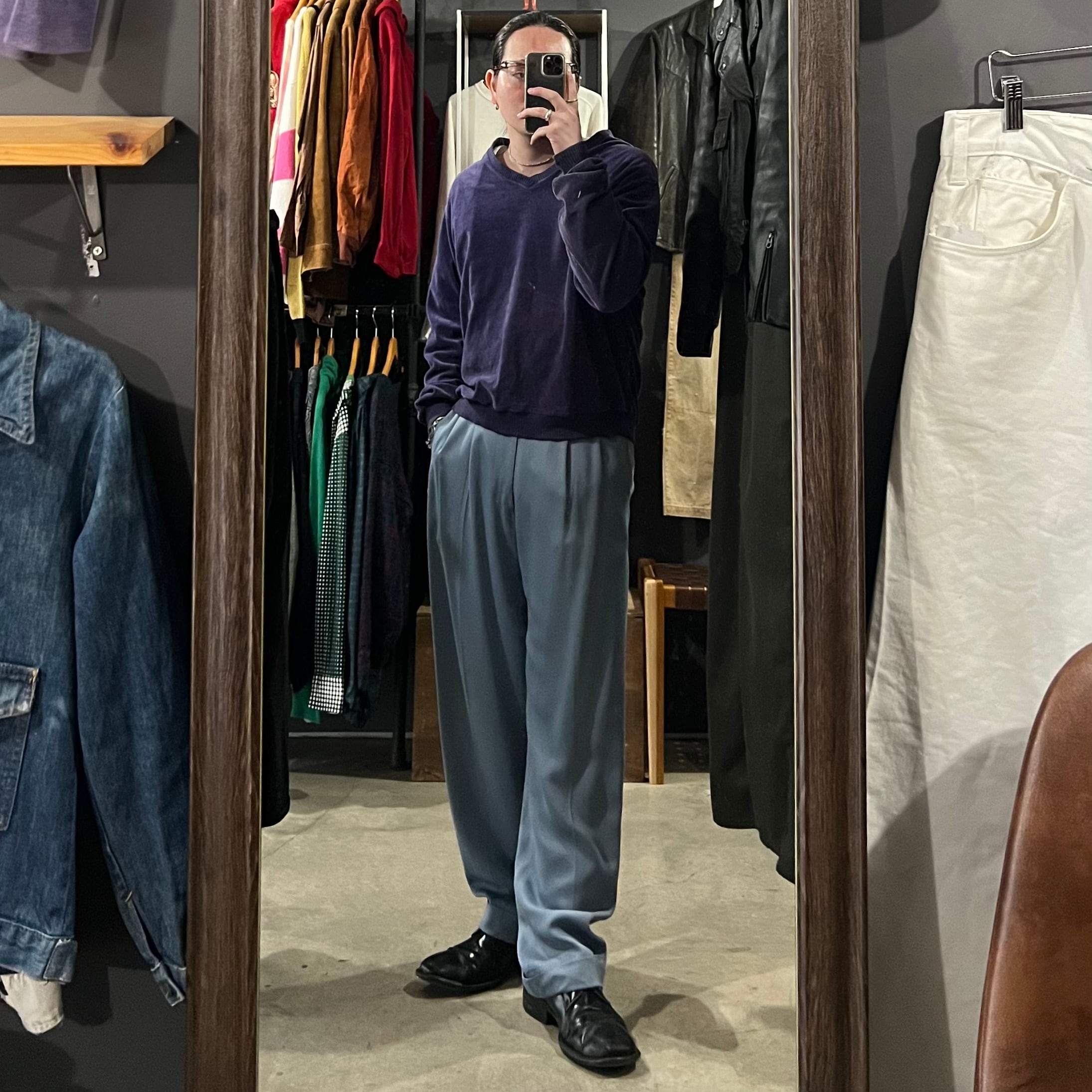 80s William Pilkington cotton×polyester? velour v-neck pullover XL