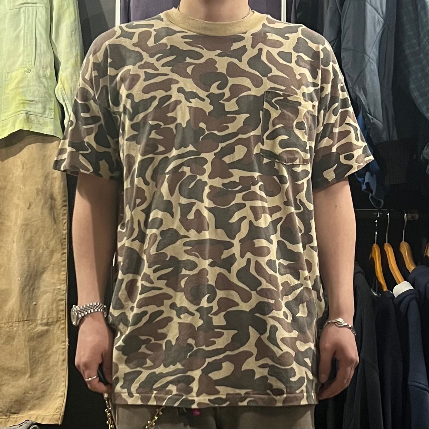 80s SPORTS WEAR plus cotton×polyester camouflage pocket T-shirt XL