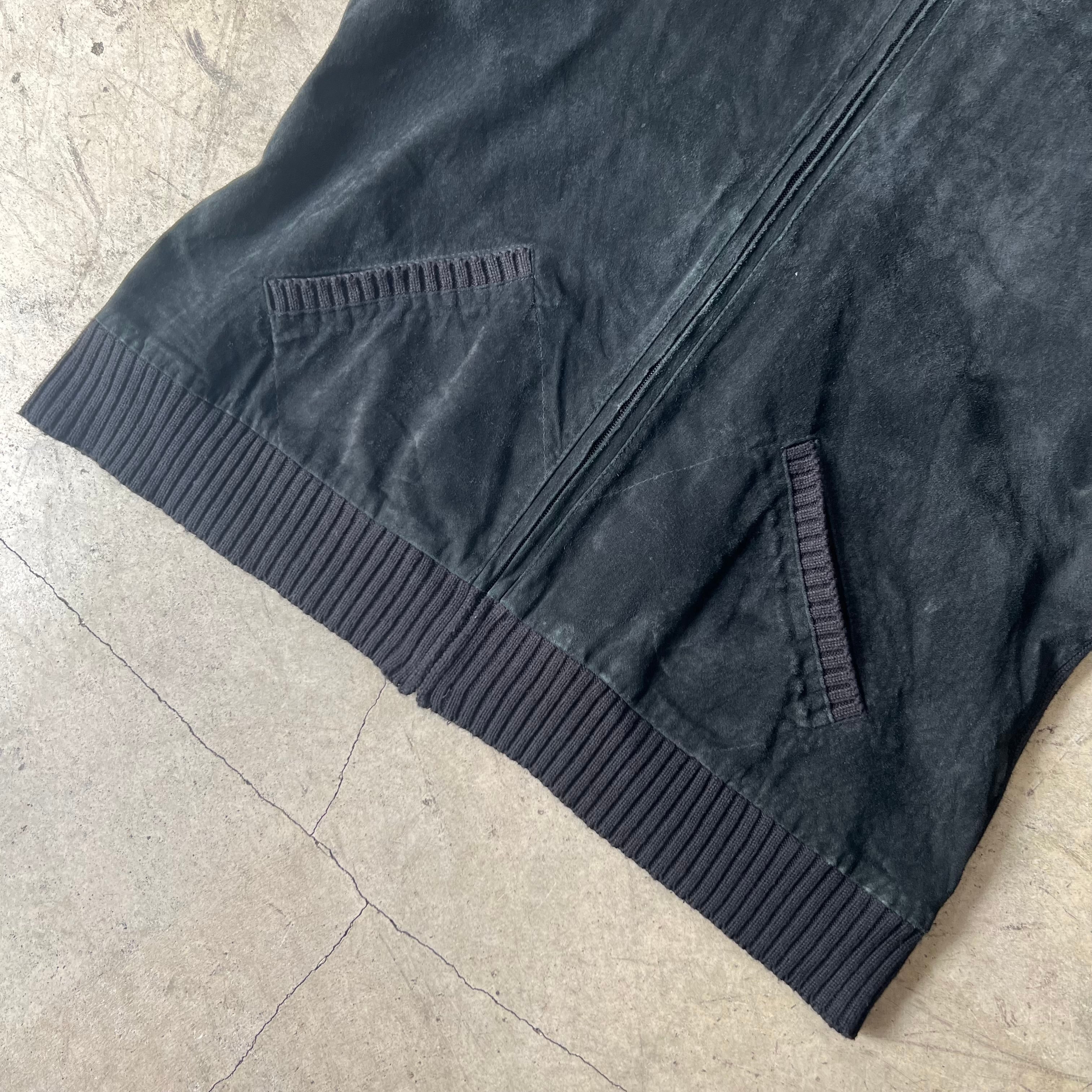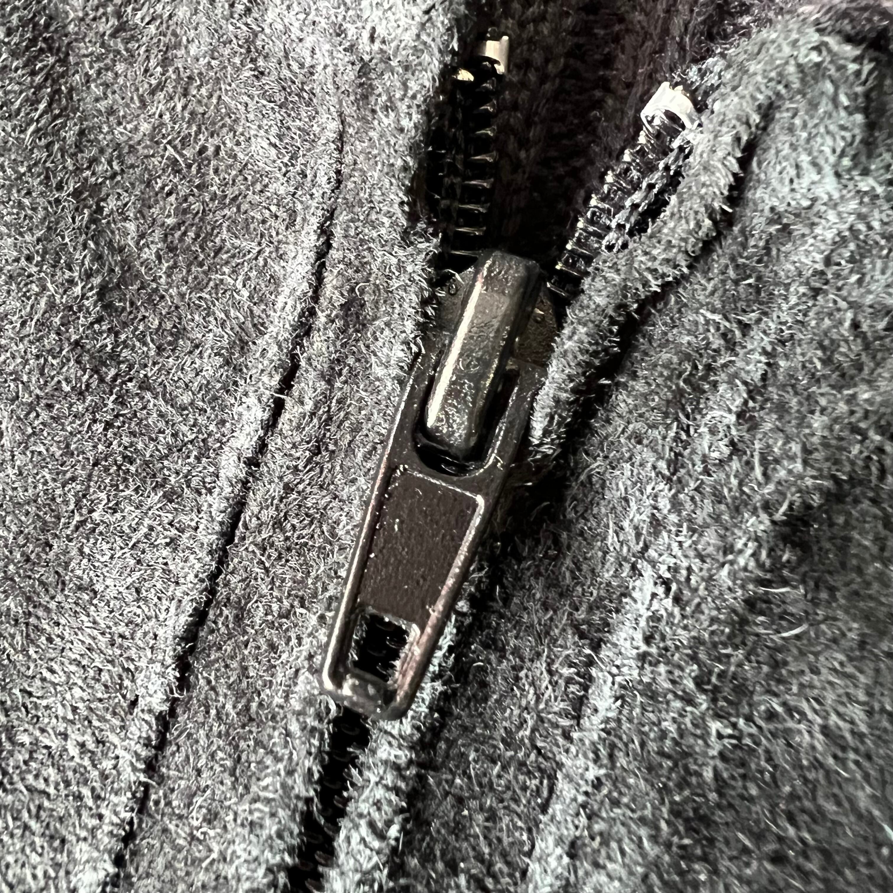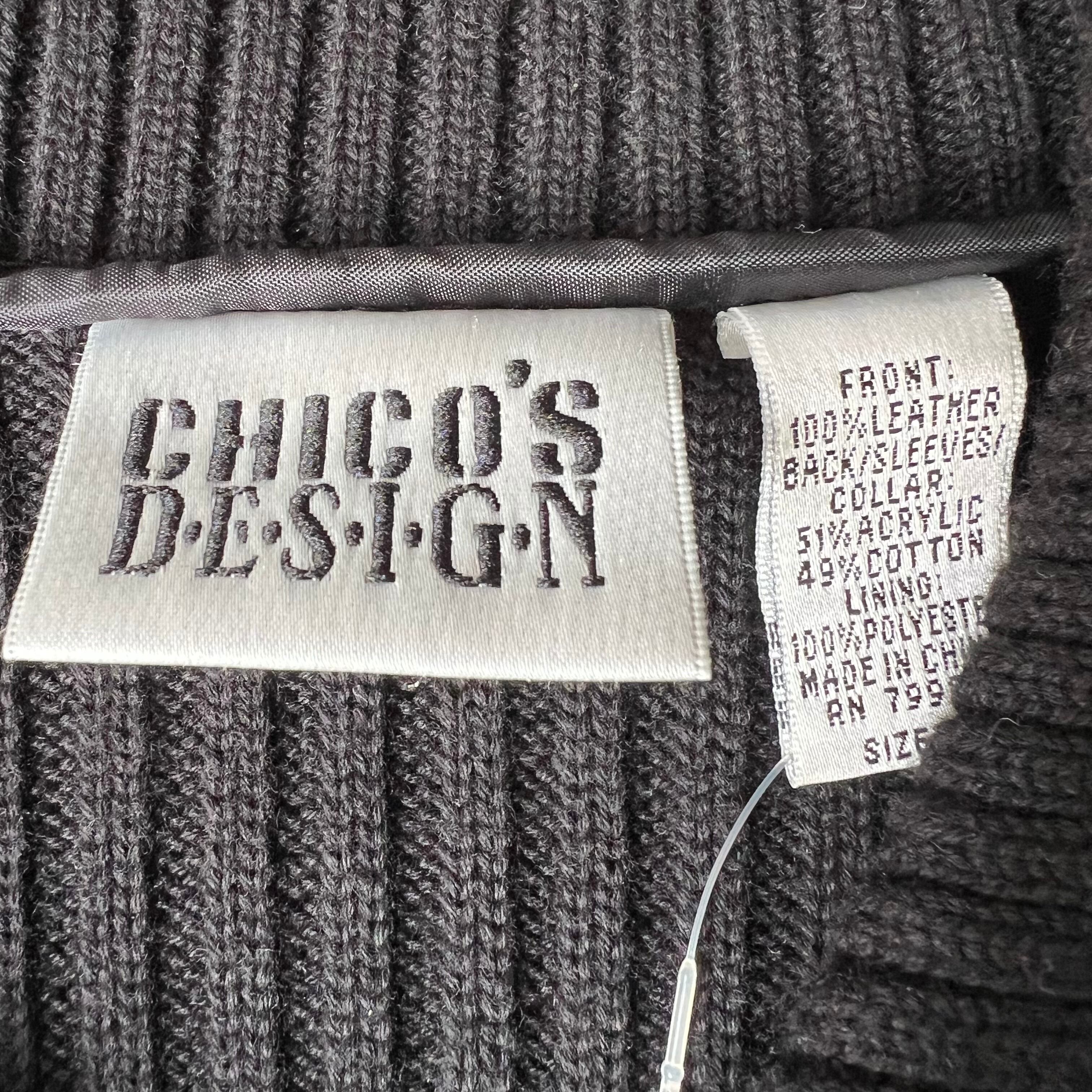 Old CHICO'S DESIGN leather×acrylic×cotton zip-up jacket